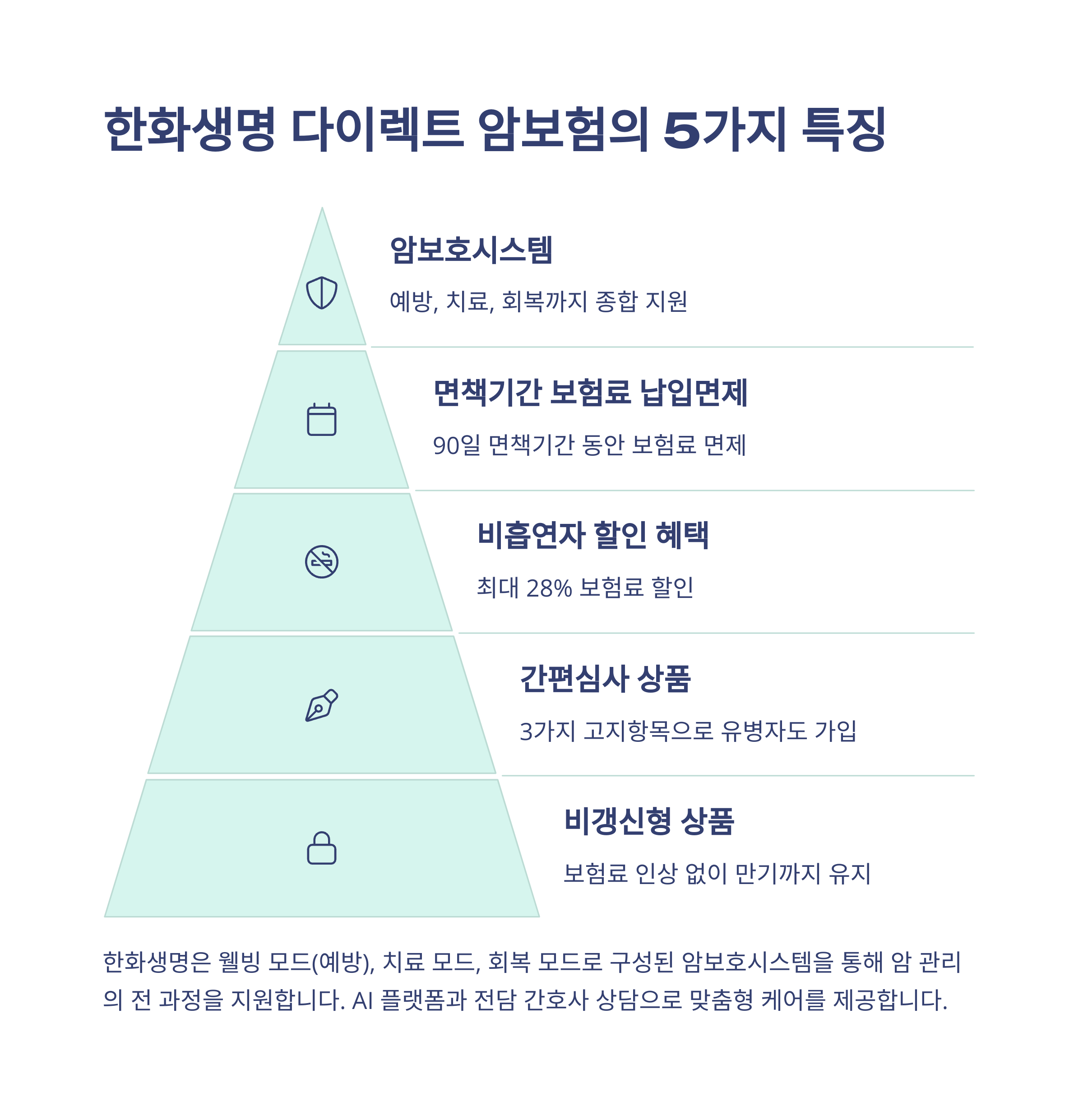 한화생명 다이렉트 암보험이 다른 암보험들과 차별화되는 몇 가지 중요한 특징들이 있어요. 제가 가장 인상 깊었던 점들을 중심으로 설명해 드릴게요. 정말 저 같은 평범한 사람이 보험을 고를 때 중요하게 생각하는 포인트들을 잘 짚어준 것 같더라고요.