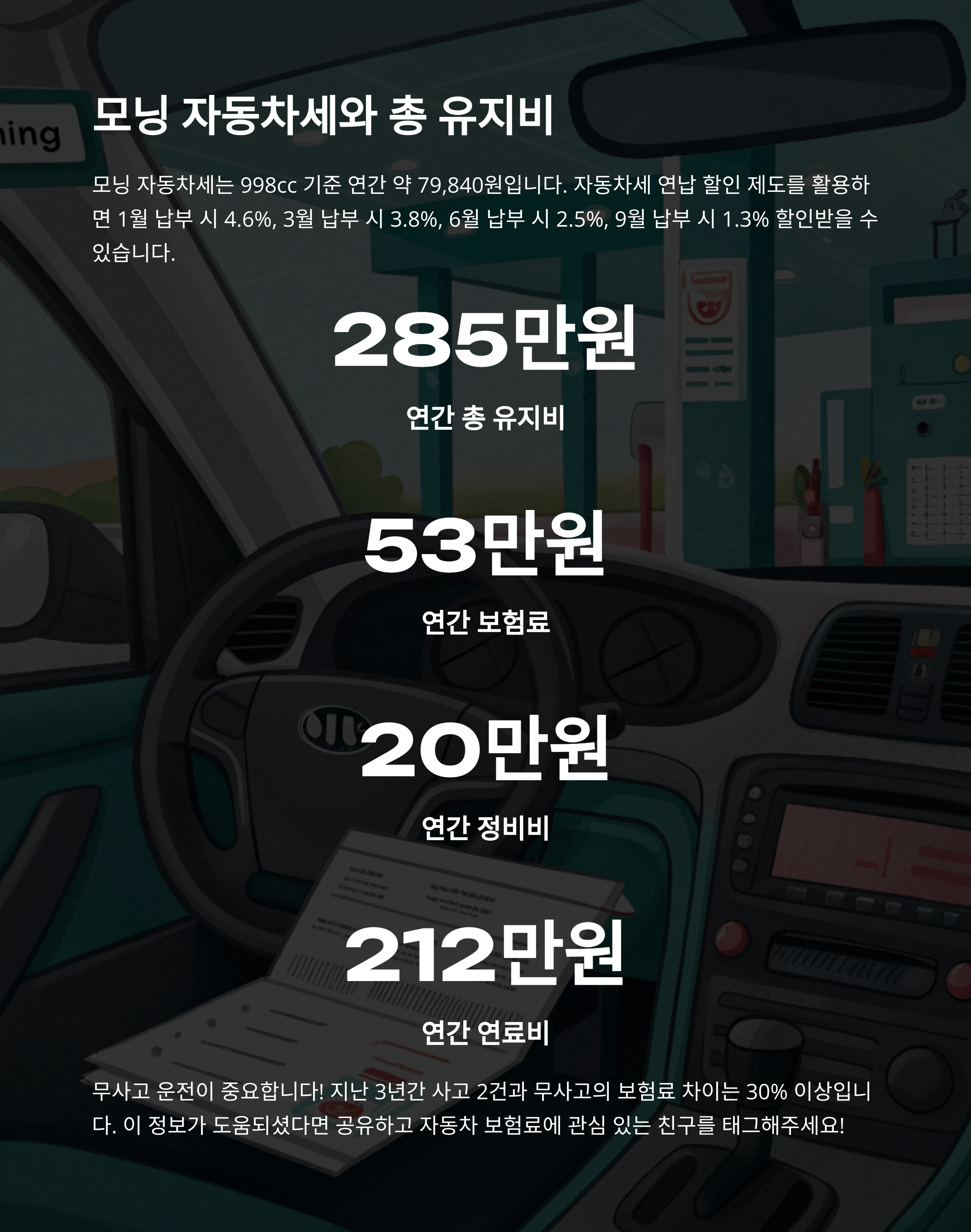 모닝 보험료 절약 방법 & 유지비