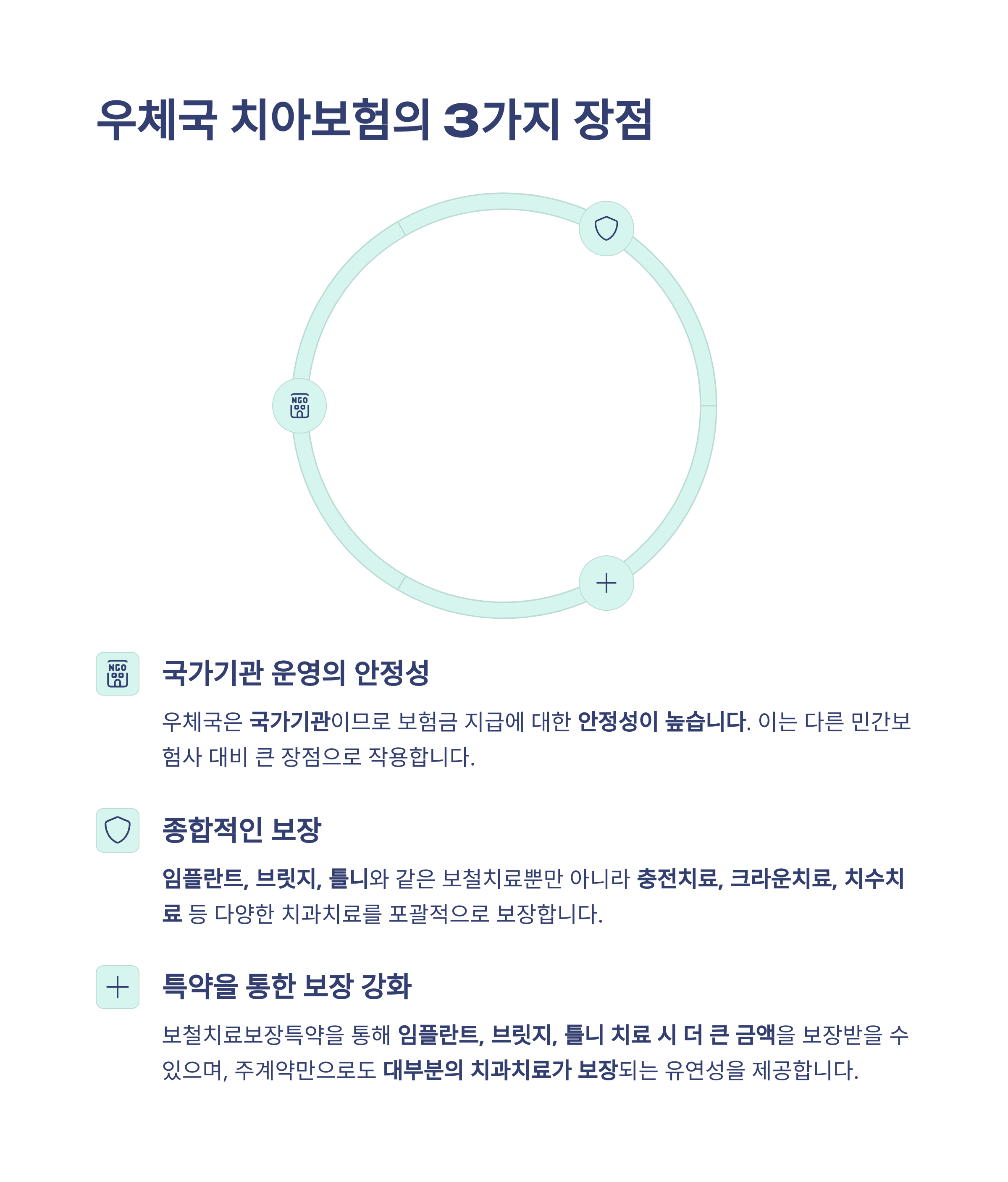 우체국 치아보험이 꾸준한 인기를 끄는 이유는 명확합니다. '국가기관의 안정성'과 '포괄적 보장'이라는 두 축이 균형 있게 조화를 이루고 있기 때문이에요.
