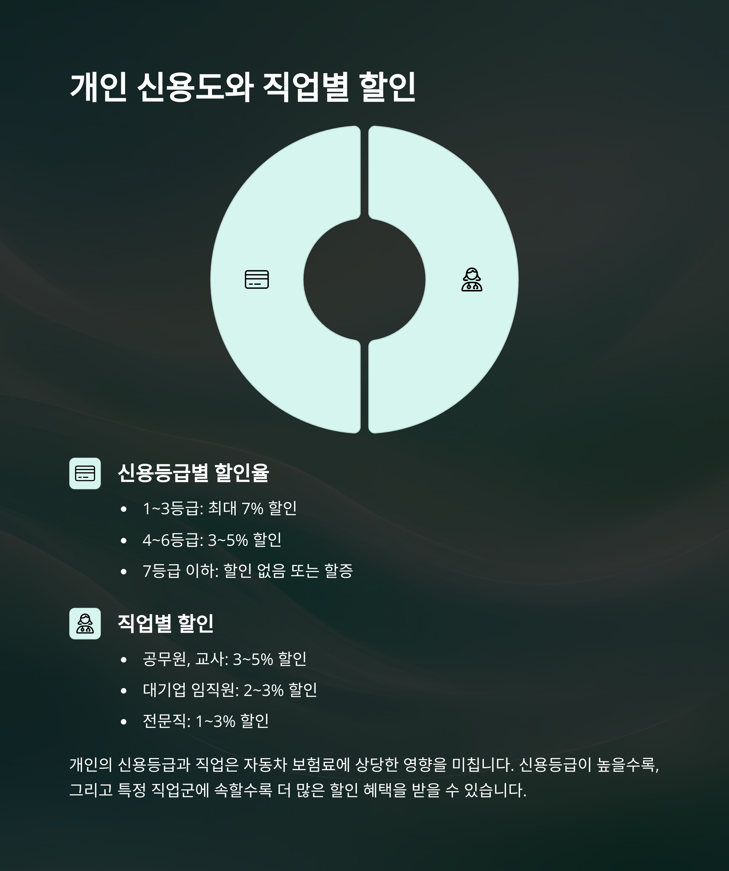 • 신용등급과 직업: 고신용자는 최대 7% 할인, 공무원·전문직은 추가 할인 적용