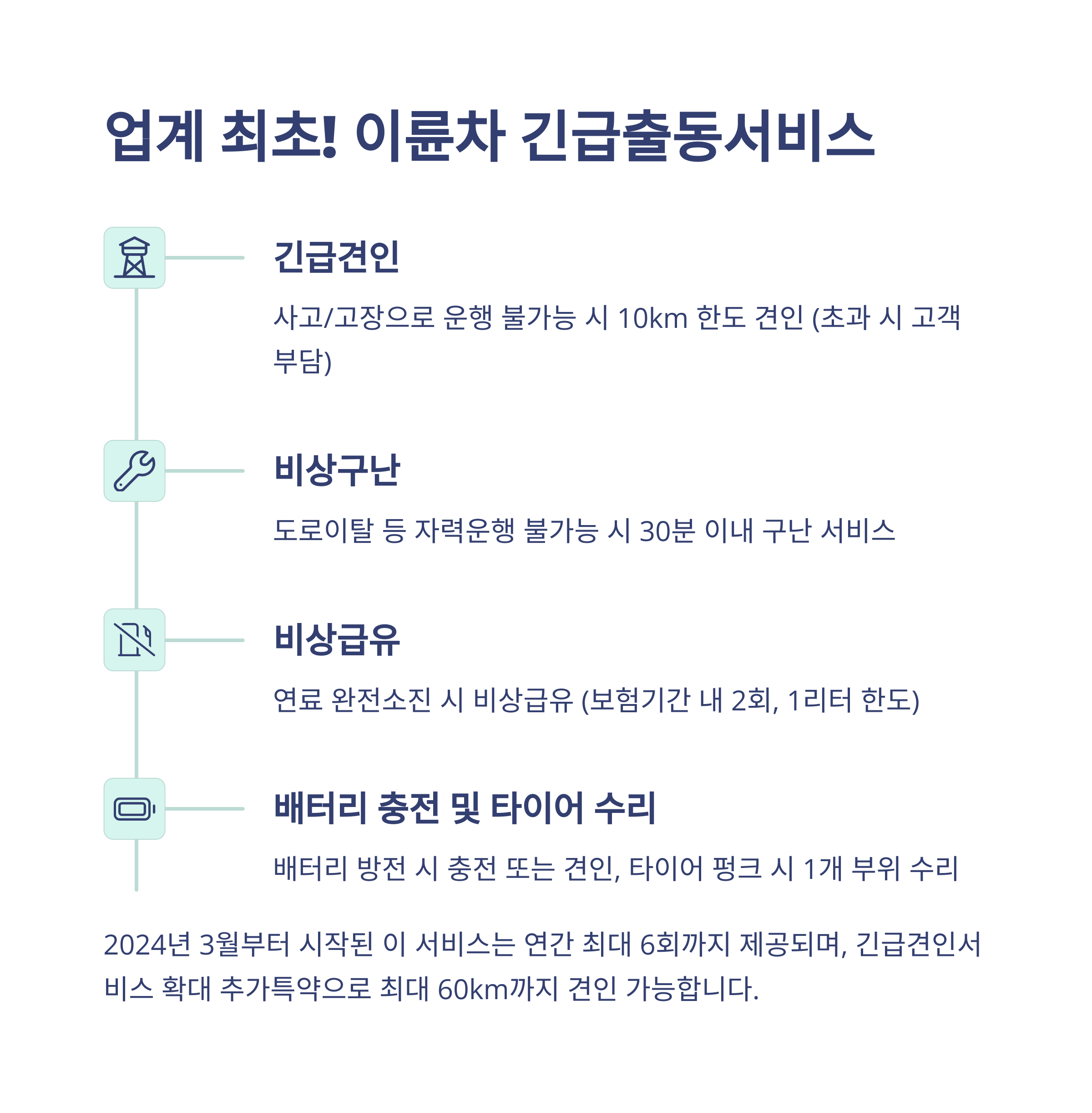 - 긴급견인: 10km 기본, 최대 60km 확대 가능