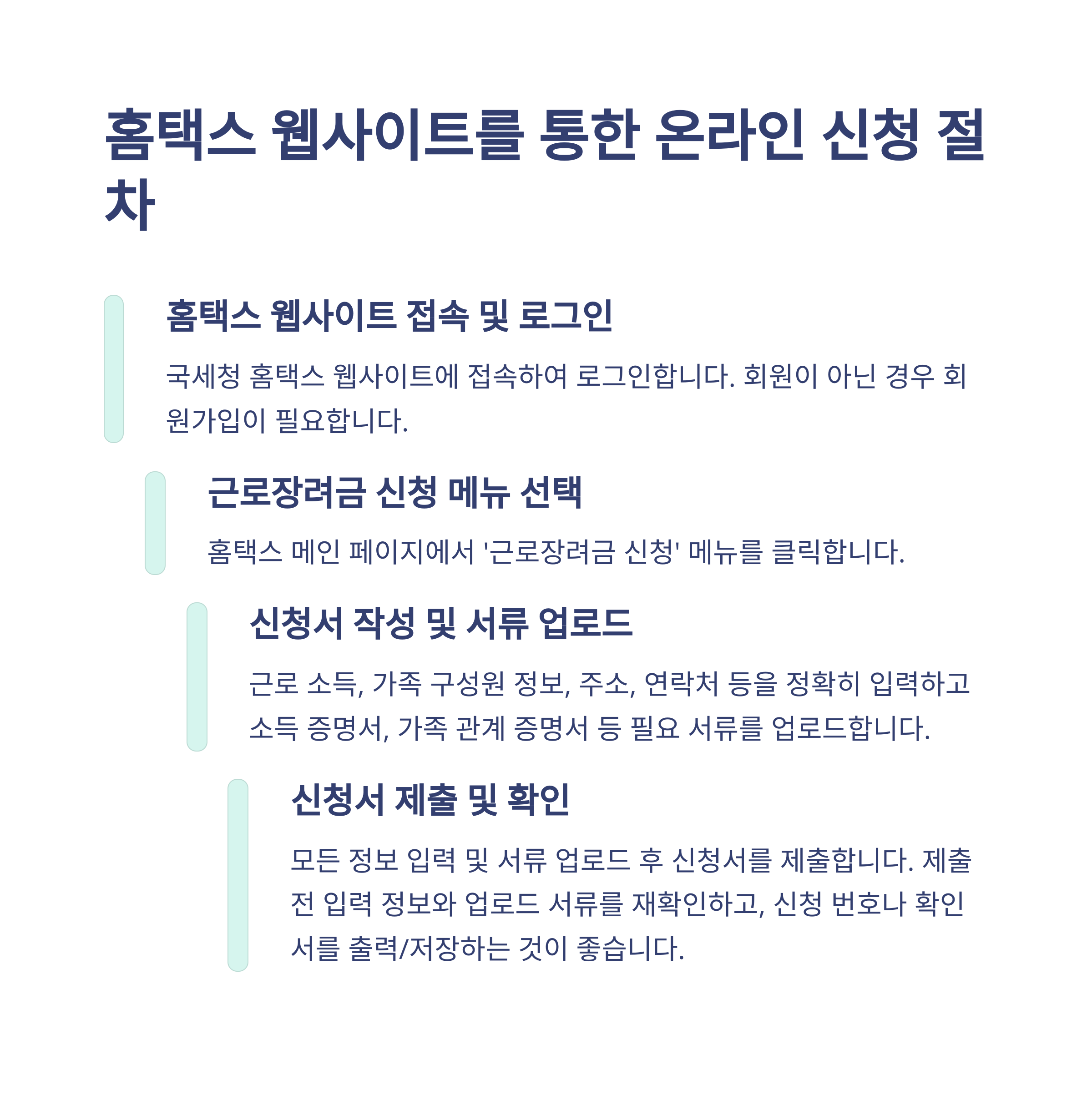 - 홈택스 PC/모바일 신청: 로그인 후 장려금 메뉴에서 신청 가능