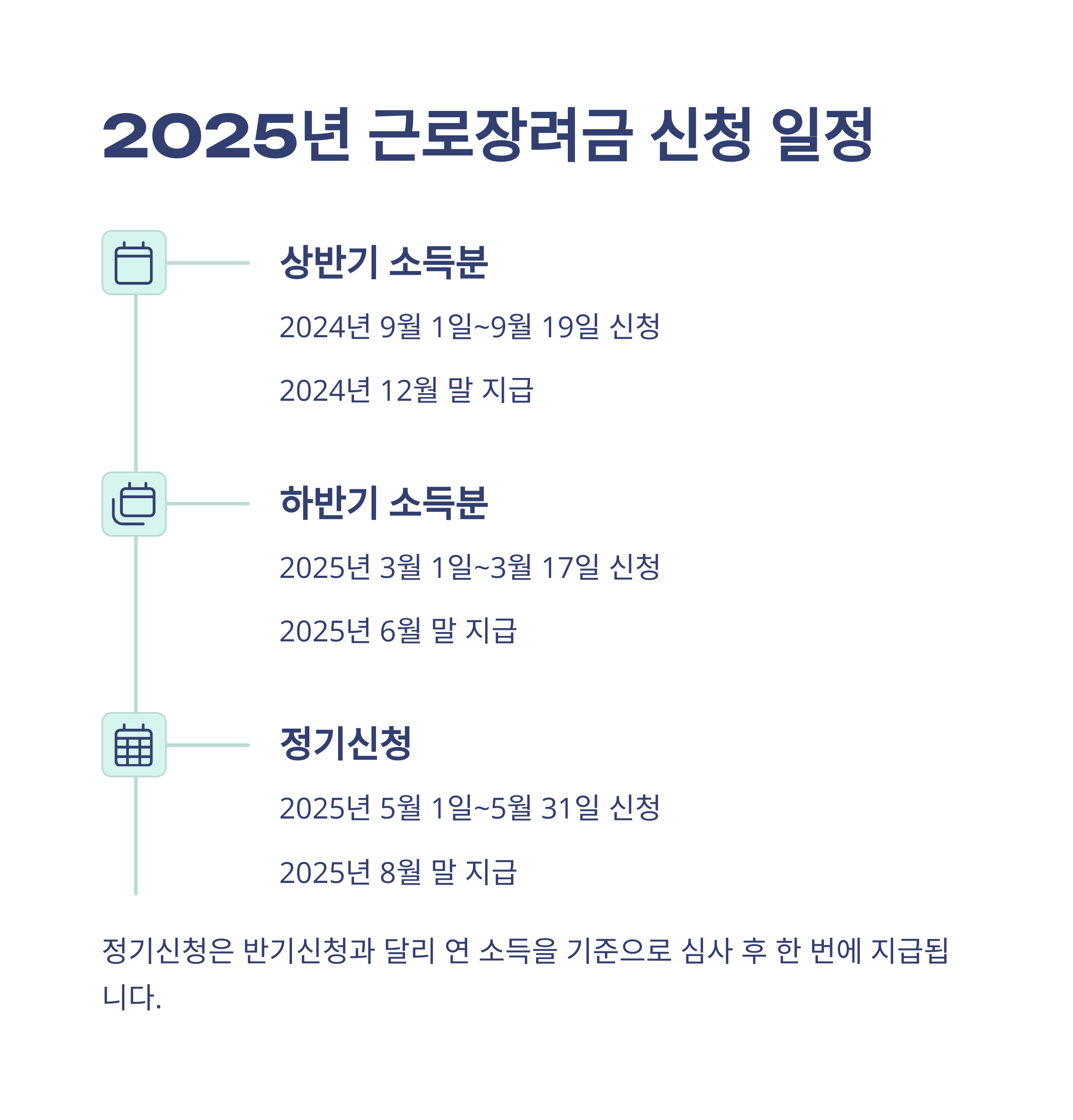 2025년 근로장려금은 반기신청과 정기신청, 두 가지 방식으로 진행됩니다.