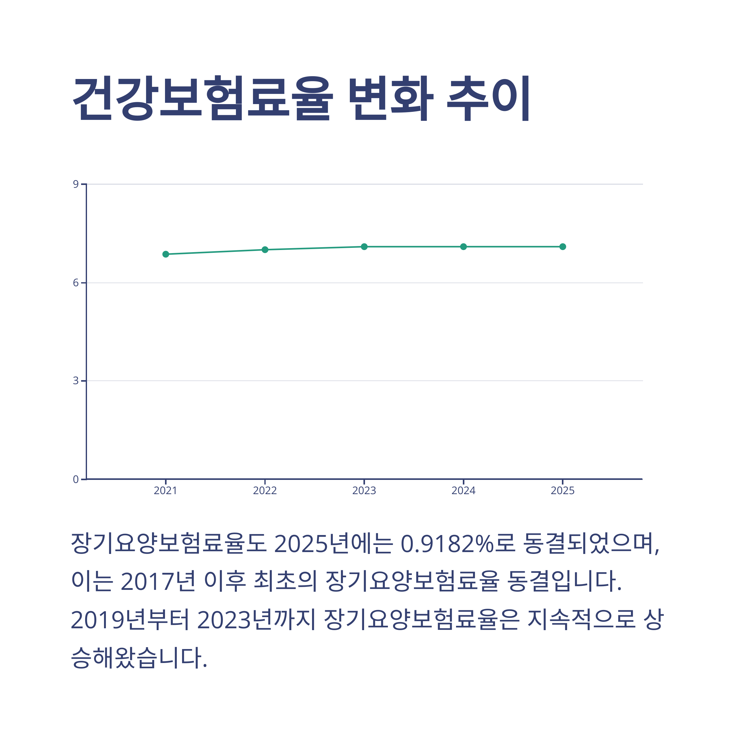 지난 5년간 건강보험료와 장기요양보험료율의 변화를 살펴보면, 매년 조금씩은 오르고 있었어요. 2025년 동결은 이례적인 선택이죠. 아래 표에서 자세히 비교해보세요.