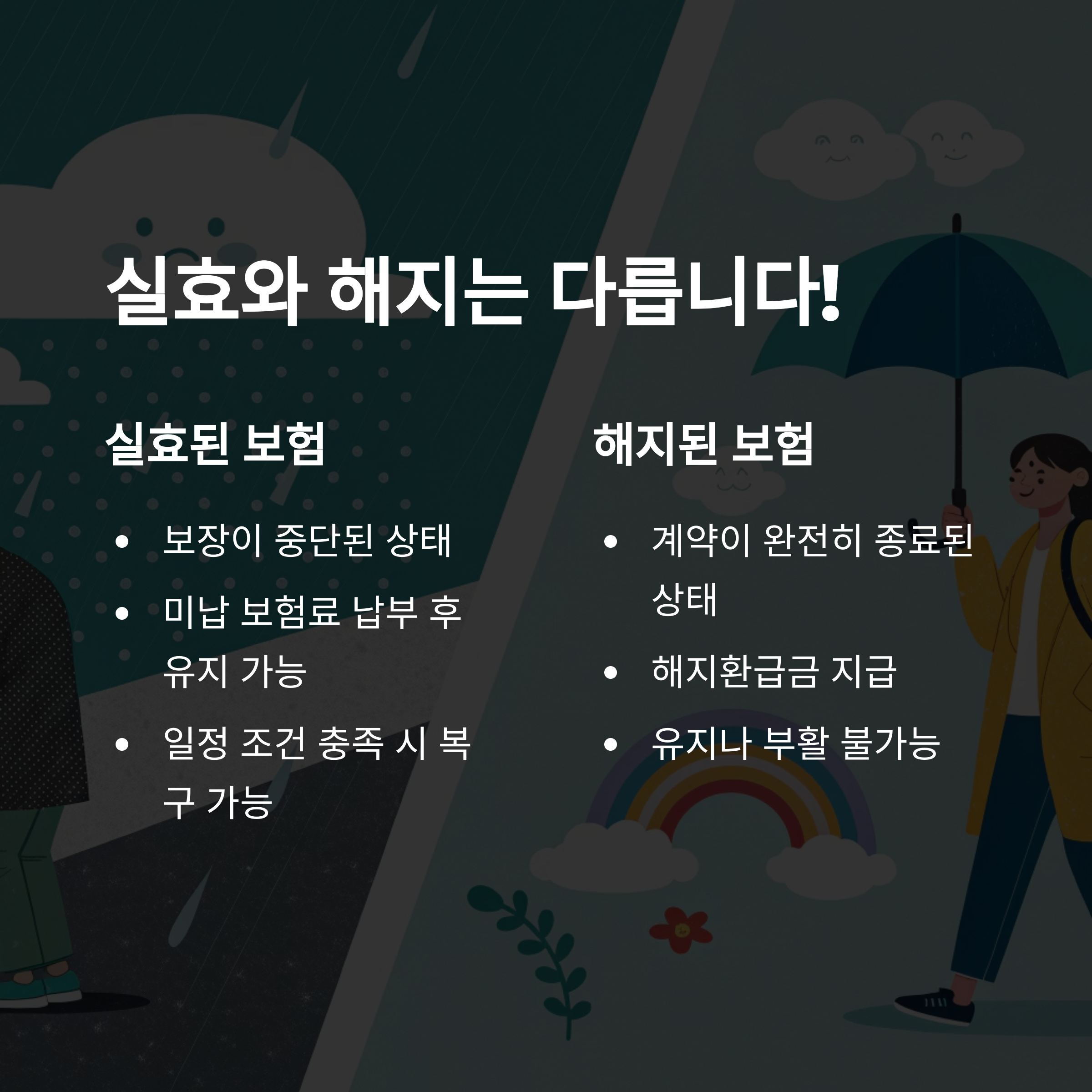 실효 상태에서는 보험료를 다시 내면 복구 가능하지만, 해지 후에는 복구가 불가능합니다.