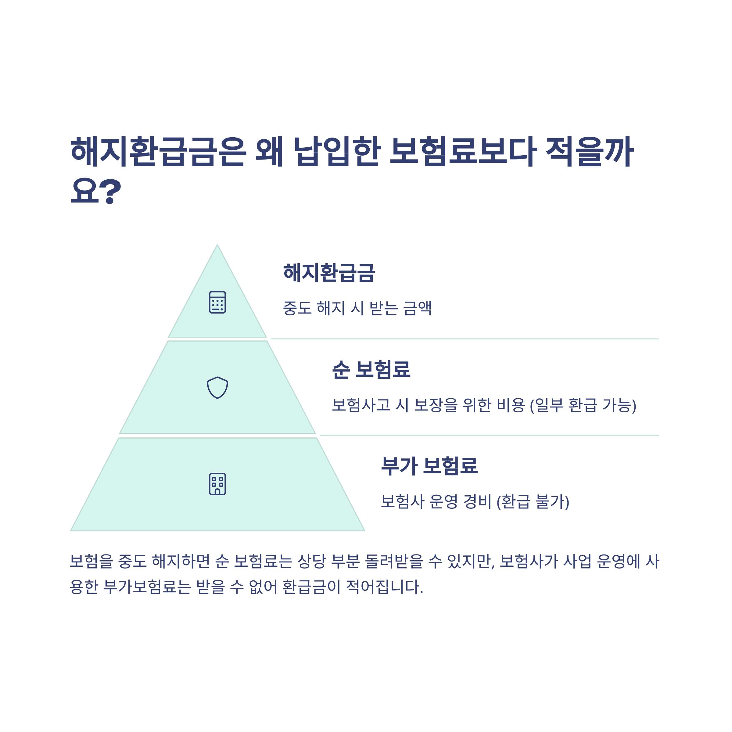 보험 해지환급금은 단순히 납입한 돈을 돌려주는 게 아니에요. 보험료에는 크게 두 가지가 섞여 있어요. 바로 '순보험료'와 '부가보험료'죠. 순보험료는 보험금 지급을 위해 모아둔 돈이고, 부가보험료는 광고, 인건비 같은 운영비로 쓰입니다.