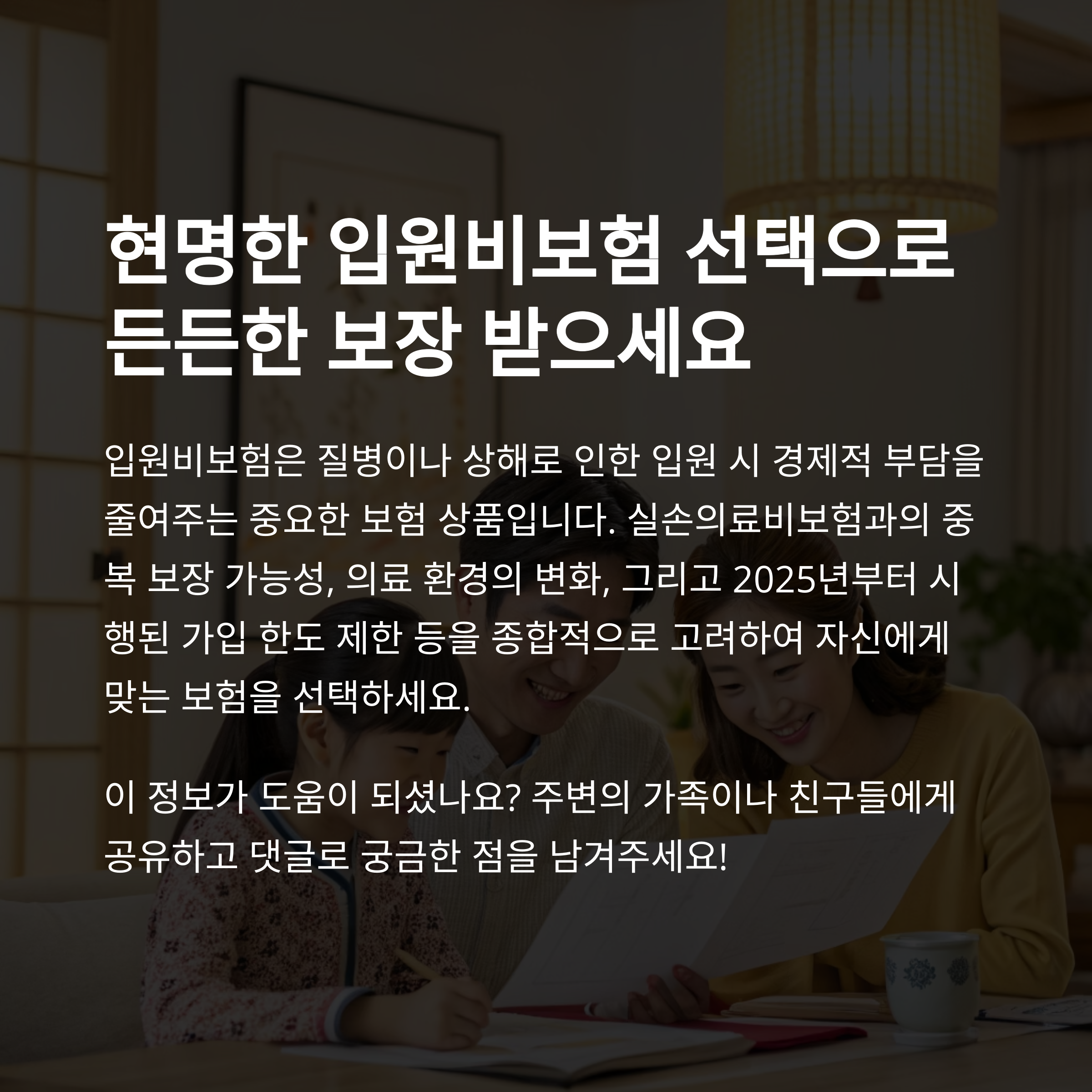 태그: 입원비보험, 실손보험, 보험가입, 2025보험정보, AIA보험, 갱신형보험, 정액보험, 실손의료비보험, 1인실입원비, 보험금지급, 입원일수보장, 병원입원비, 보험한도, 보험갱신, 의료비보장, 보험특약, 보장금액한도, 금융감독원, 보험비교, 건강보험