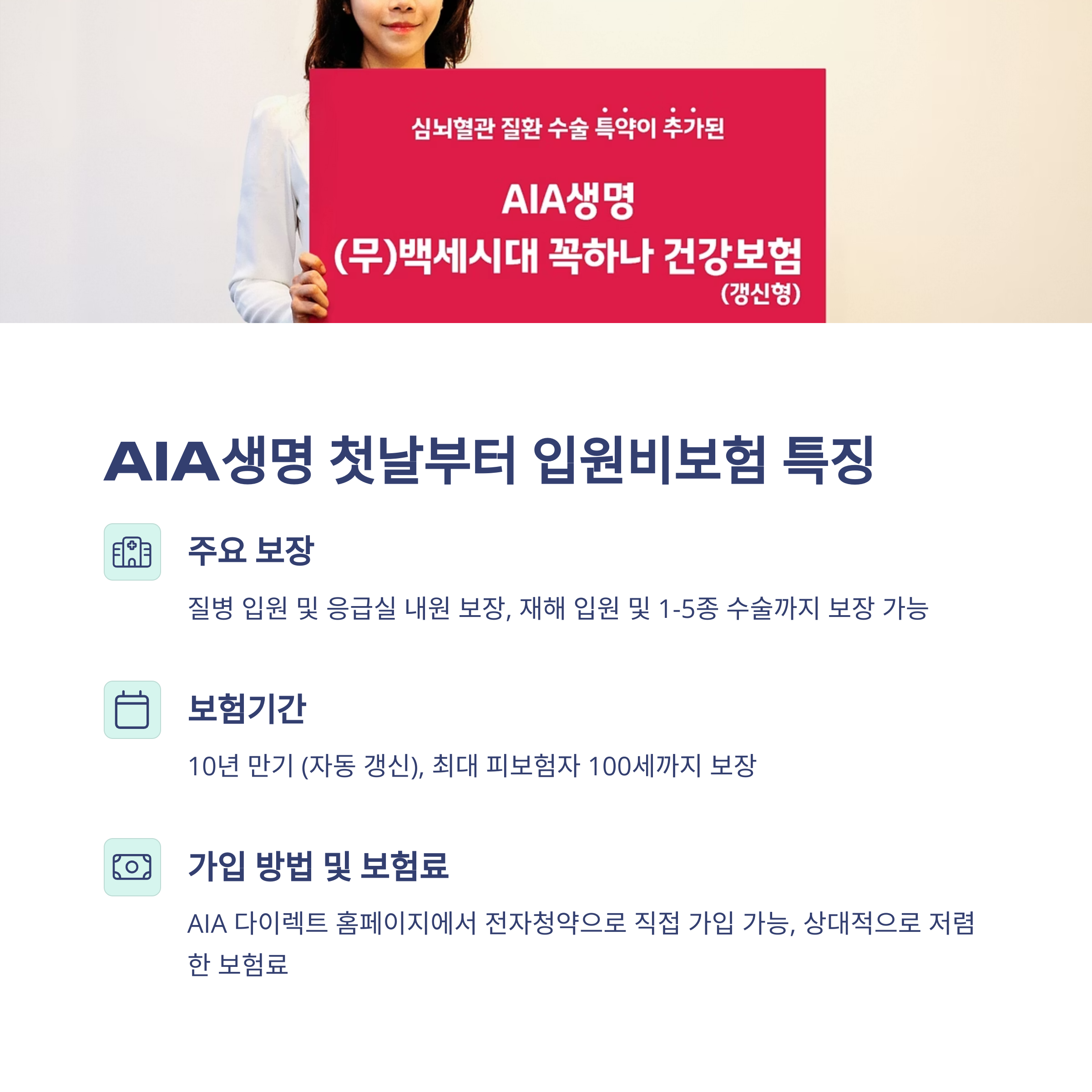 | 가입 방식 | AIA 다이렉트 홈페이지 전자청약 |