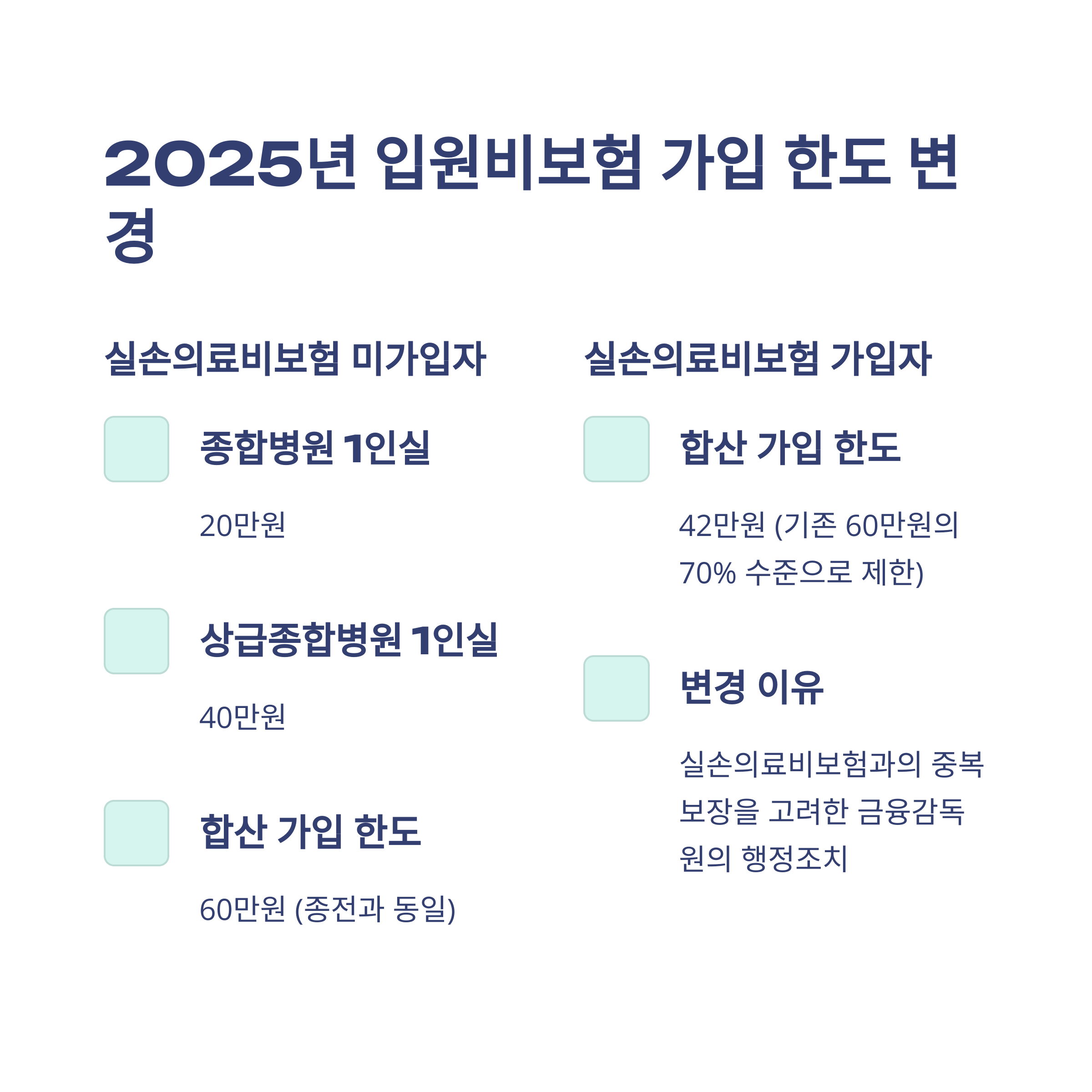 - ✔ 2025년 변경된 가입 한도 규정 숙지