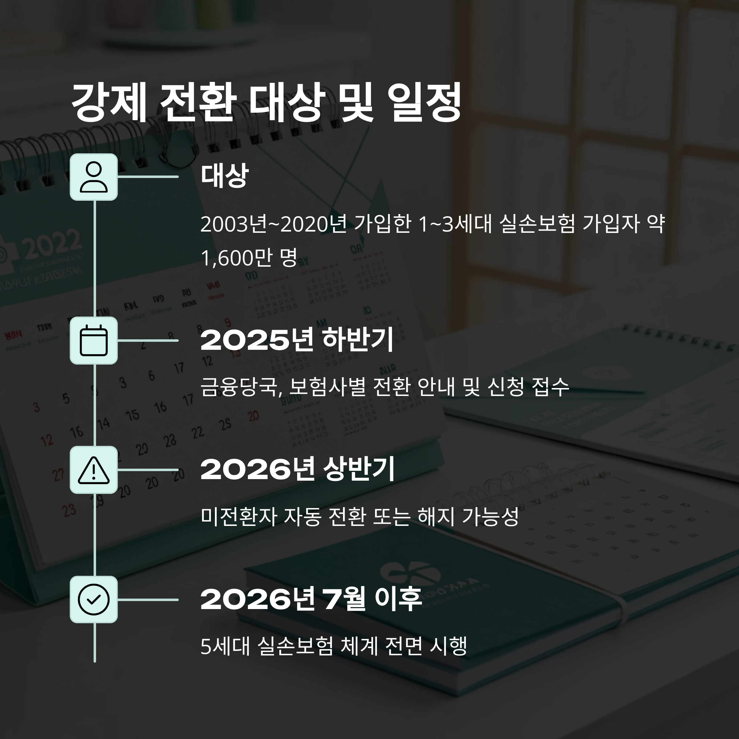 이번 5세대 전환의 대상은 2003년부터 2020년까지 가입한 1~3세대 실손보험 가입자 약 1,600만 명입니다. 특히 이들 중 많은 수는 고령자나 갱신주기에 민감한 중장년층이라, 전환 시기와 방식이 소비자 입장에서 매우 중요한 이슈예요.