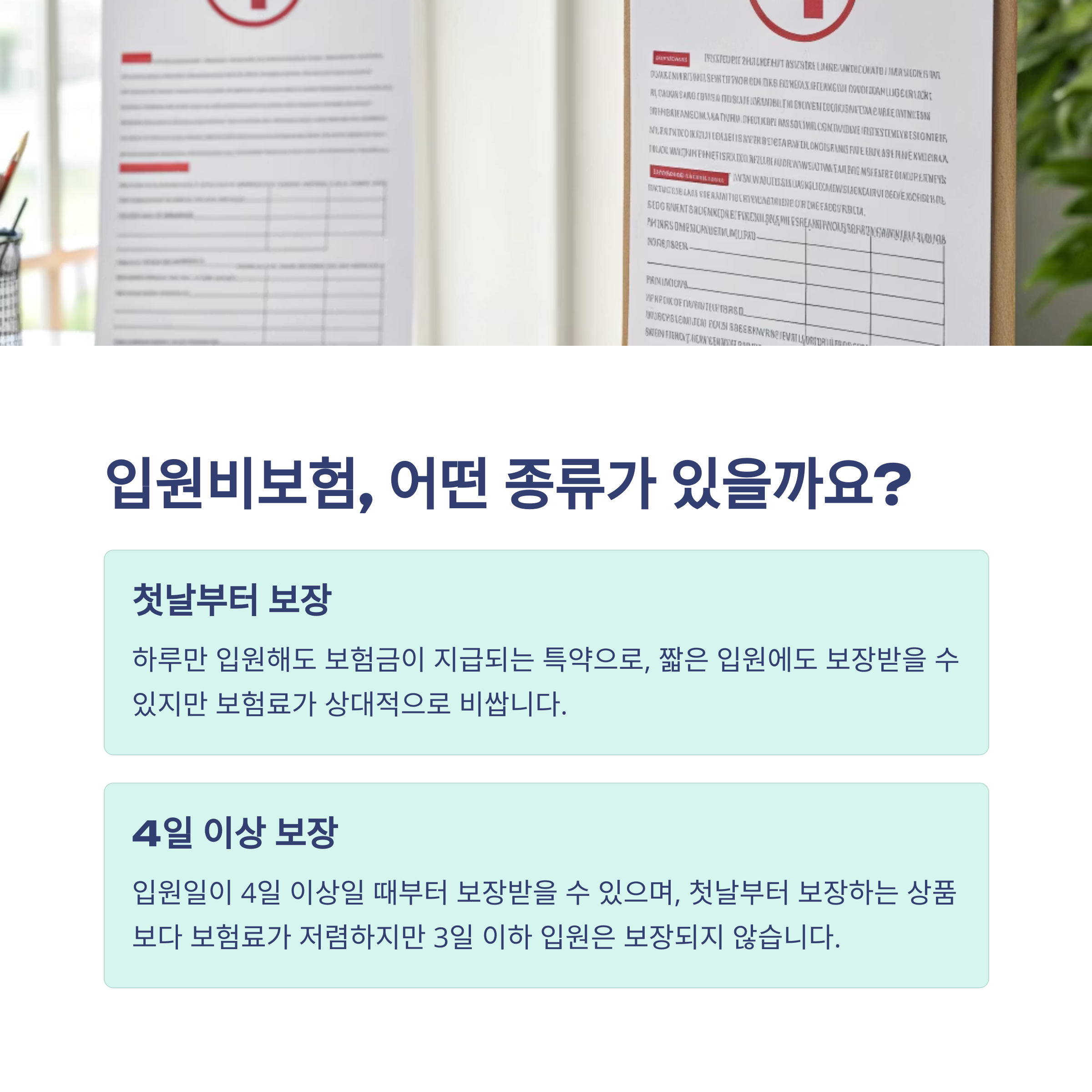 - ✔ 보장 시작일: 첫날 보장형 vs 4일 이상 보장형