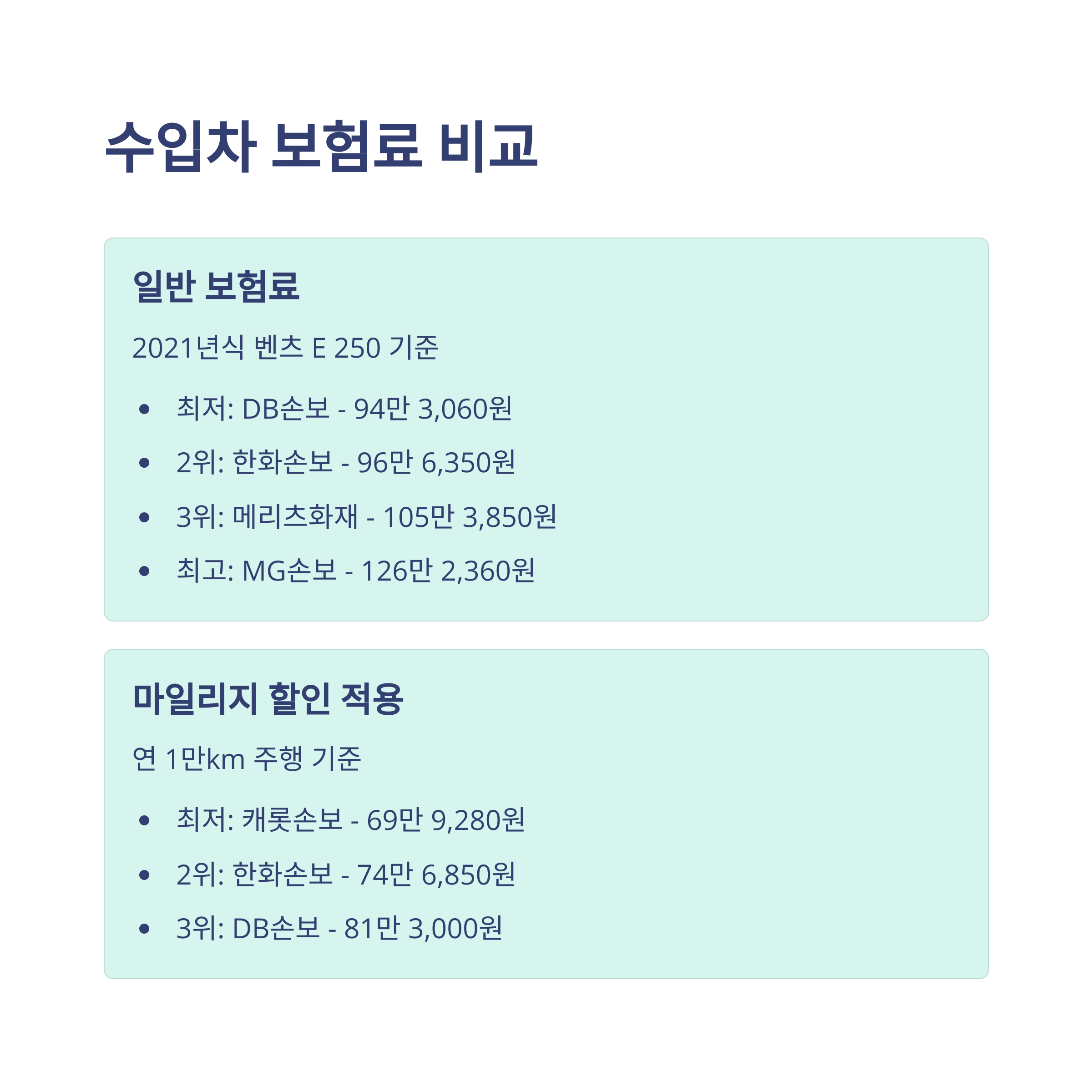 특히 마일리지 할인 조건까지 포함해보니 보험사별로 큰 차이를 보이더라고요!