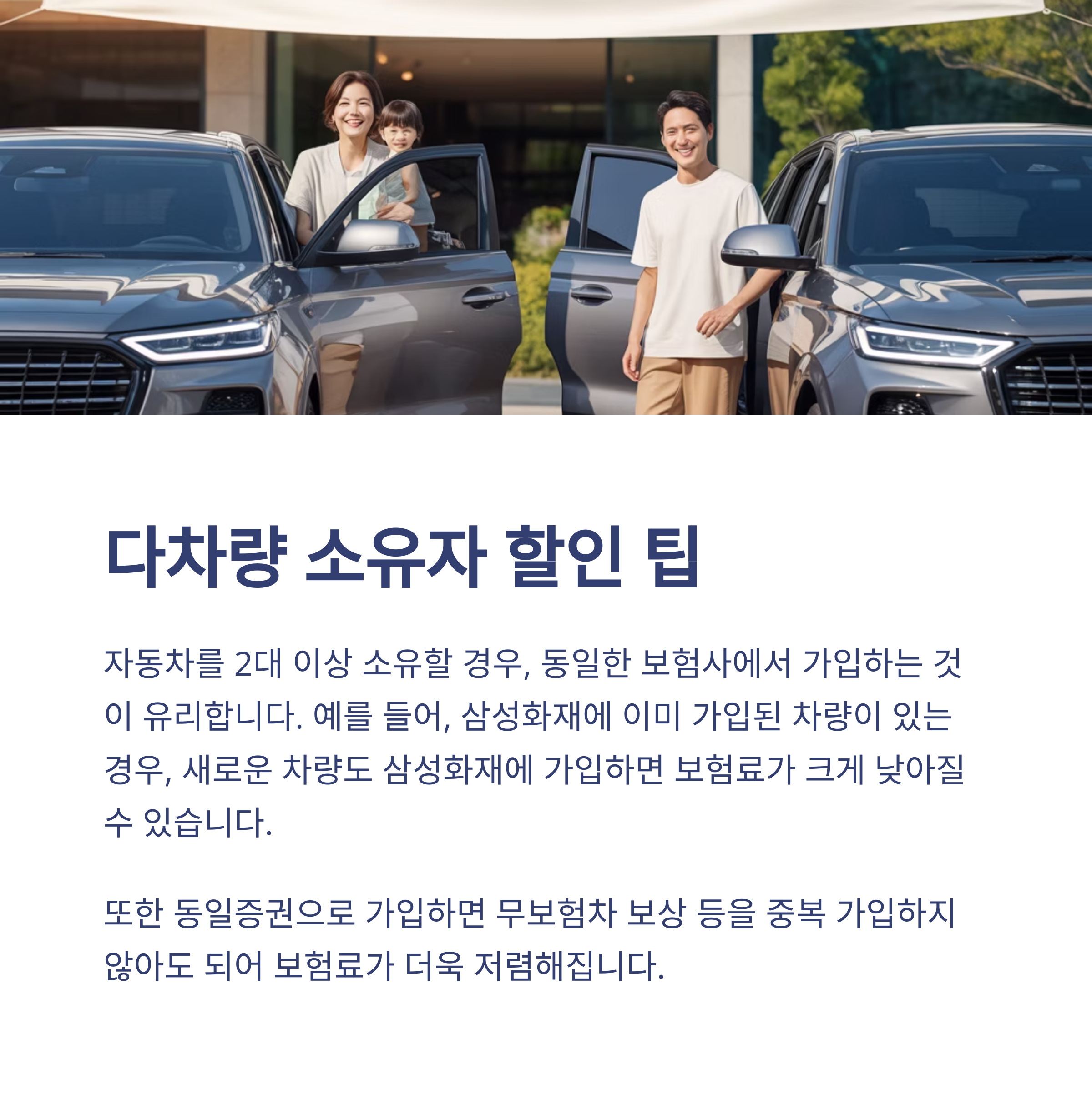 - 2대 이상 소유 시: 동일 보험사 이용하면 할인 가능!