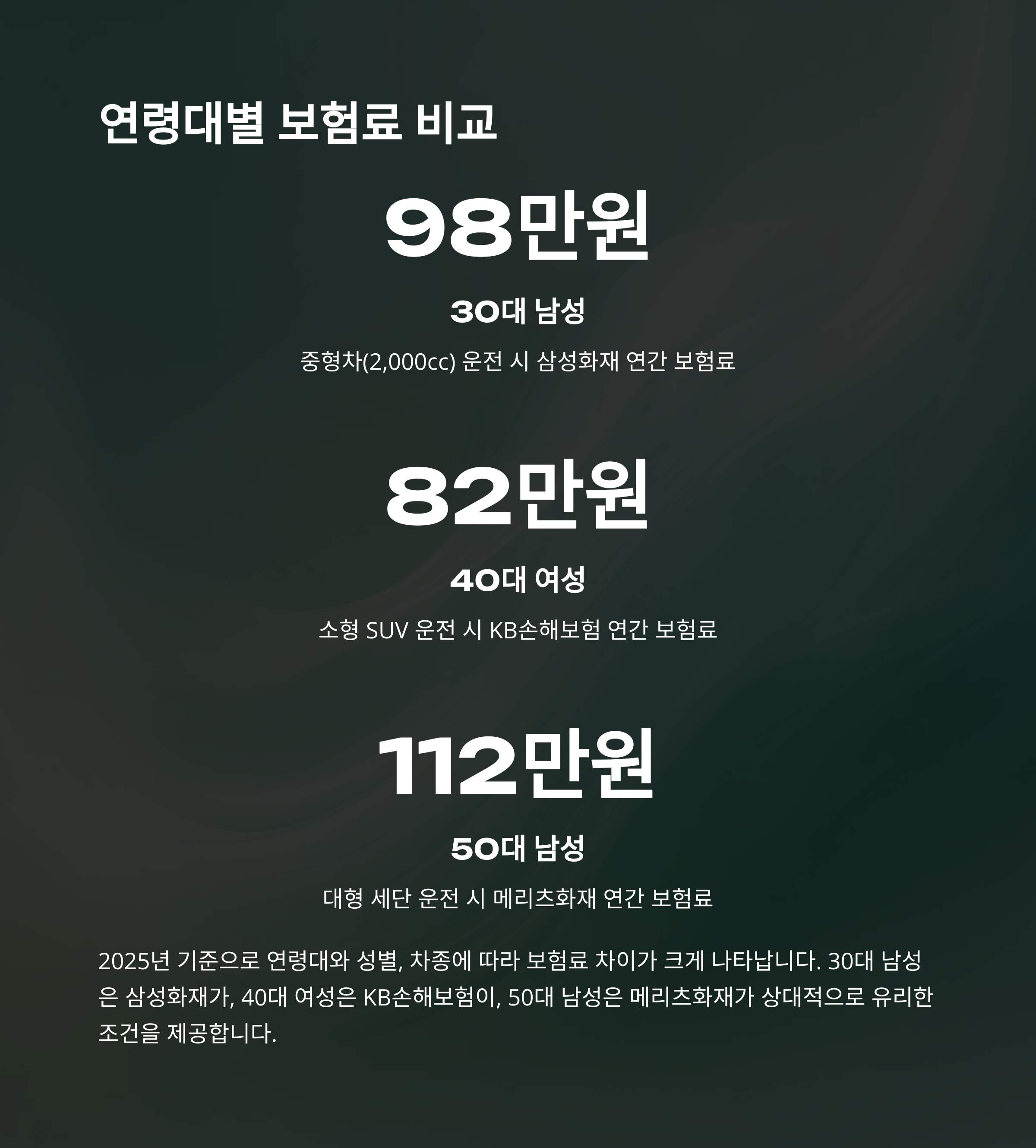 | 30대 남성 중형차 | 삼성화재 | 약 98만원 |