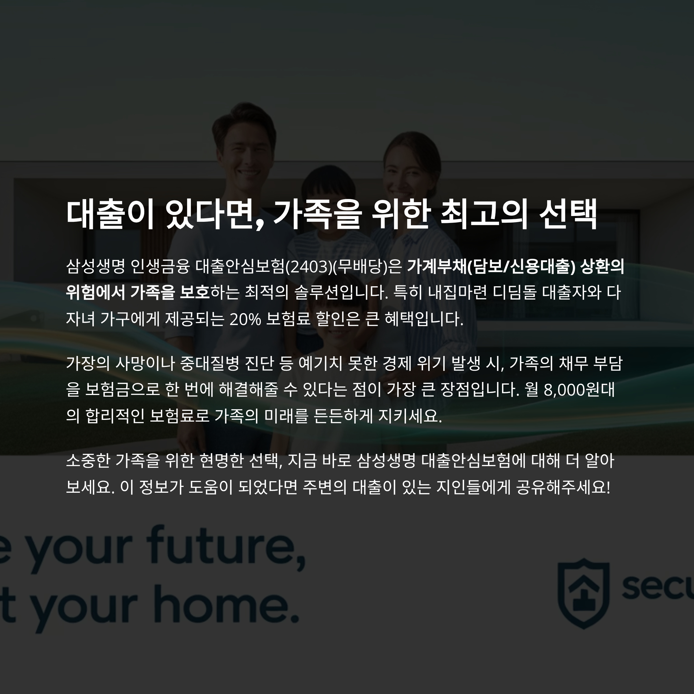 대출이 있는 당신, 만약 내가 갑자기 세상을 떠난다면 가족은 그 빚을 어떻게 감당할까요? 보험으로 막을 수 있다면요?