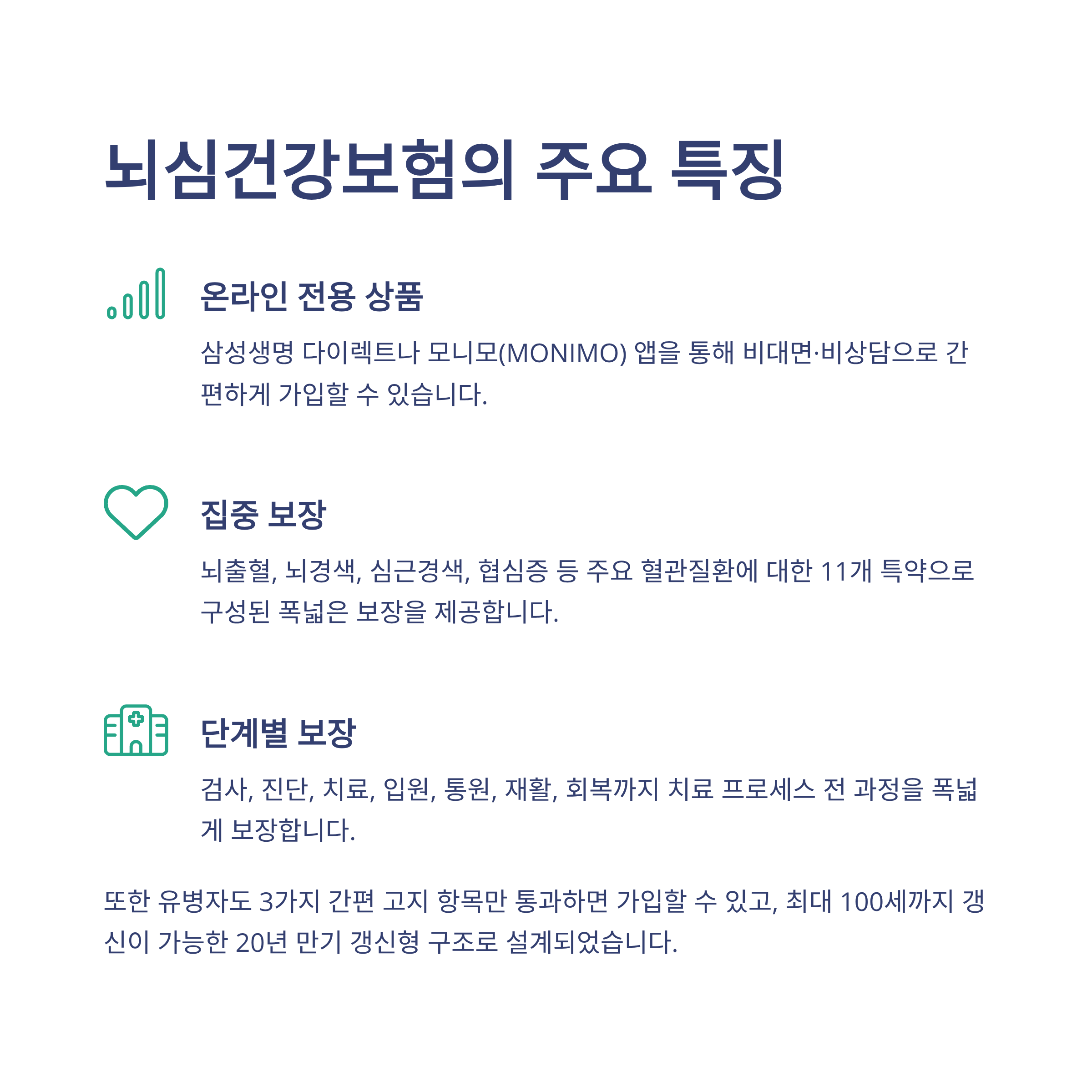 - 뇌·심혈관 질환에 특화된 11개 특약 구성