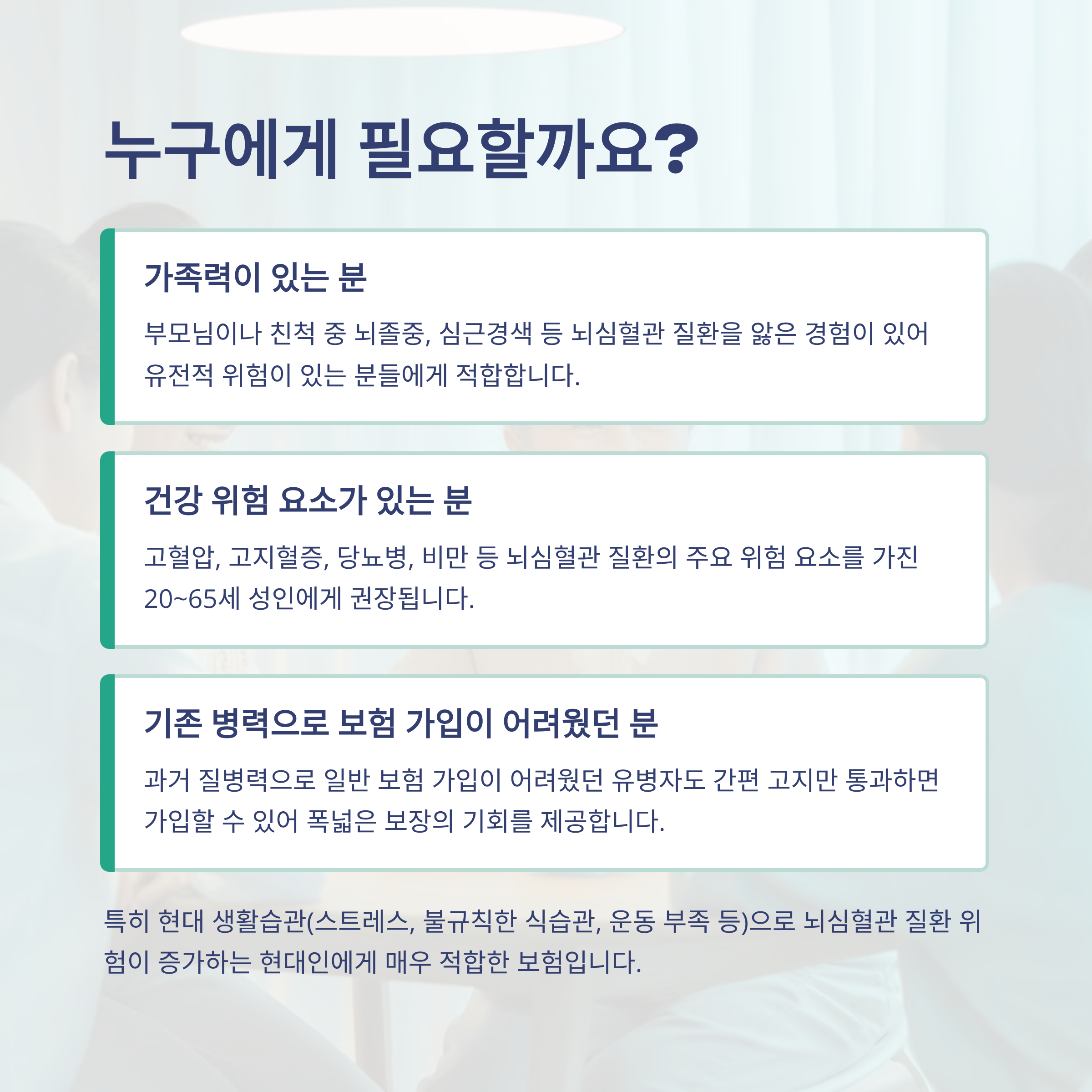 이 보험은 단순히 “보험 하나 있어야지” 수준이 아닌, 특정 위험에 대비하고 싶은 분에게 제격입니다. 특히 다음과 같은 분들은 꼭 고려해보세요: