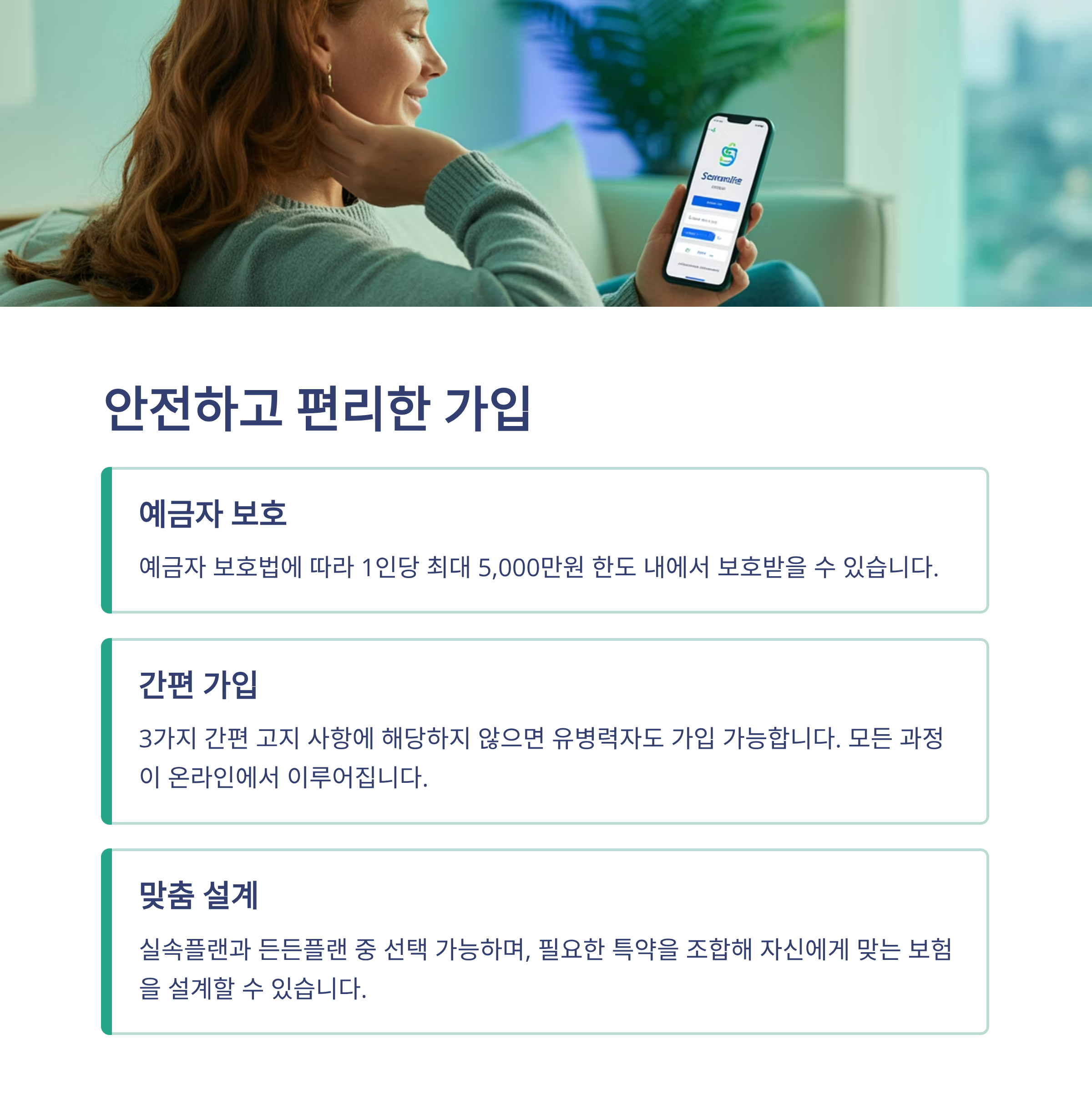 이 상품의 핵심은 ‘간편 가입’입니다. 일반 심사 없이 단 3가지 항목만 확인하면 가입 가능하다는 사실, 믿기시나요? 유병자나 고연령자도 문턱을 확 낮췄습니다.