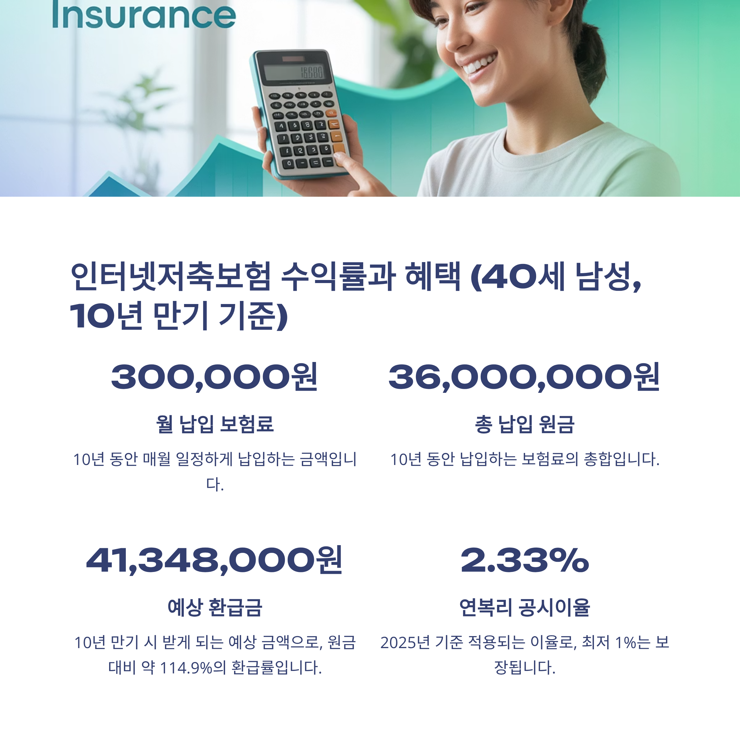 | 공시이율 (2025) | 연복리 2.33% (최저보증이율 1%) |