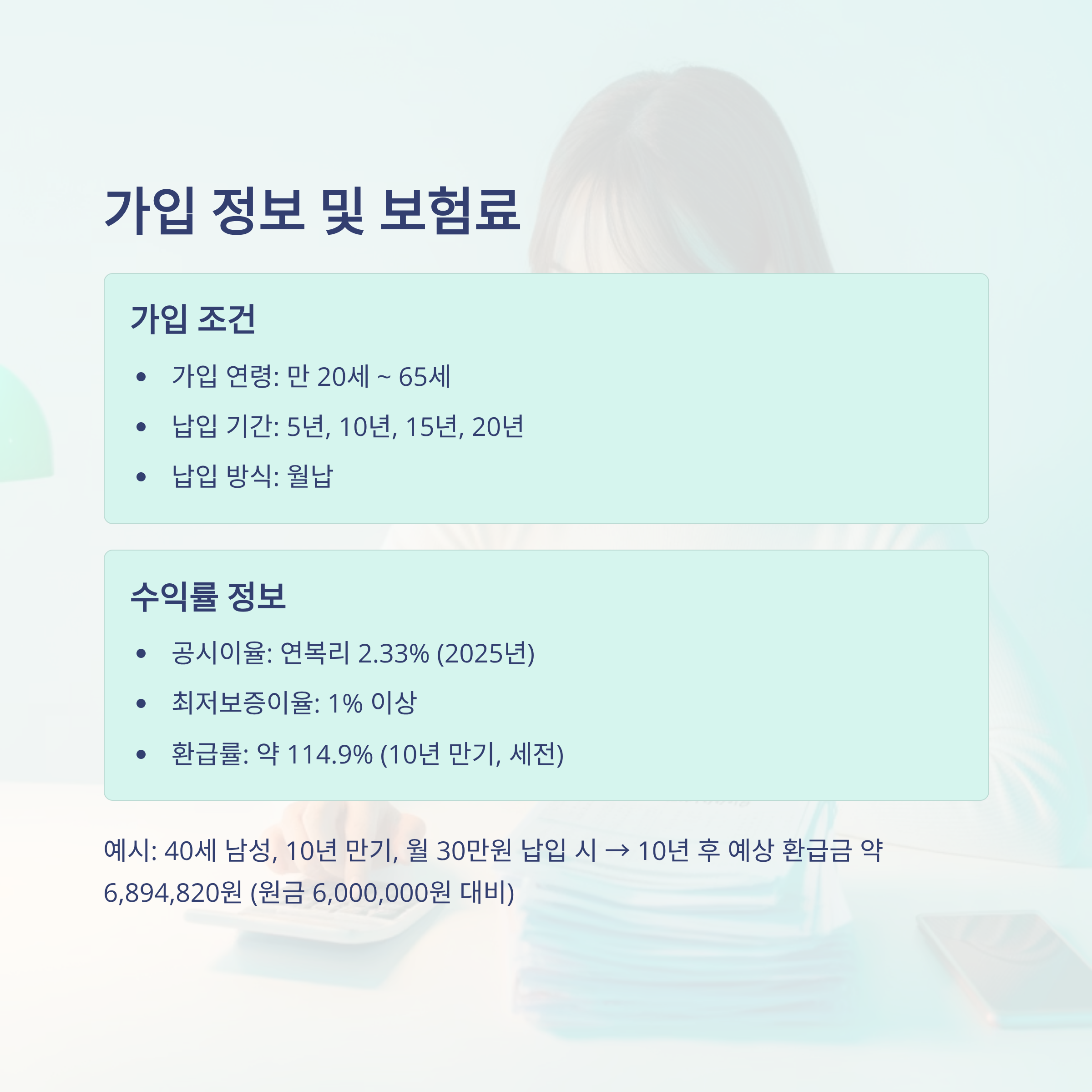| 환급률 (10년 예시) | 약 114.9% (세전 기준) |