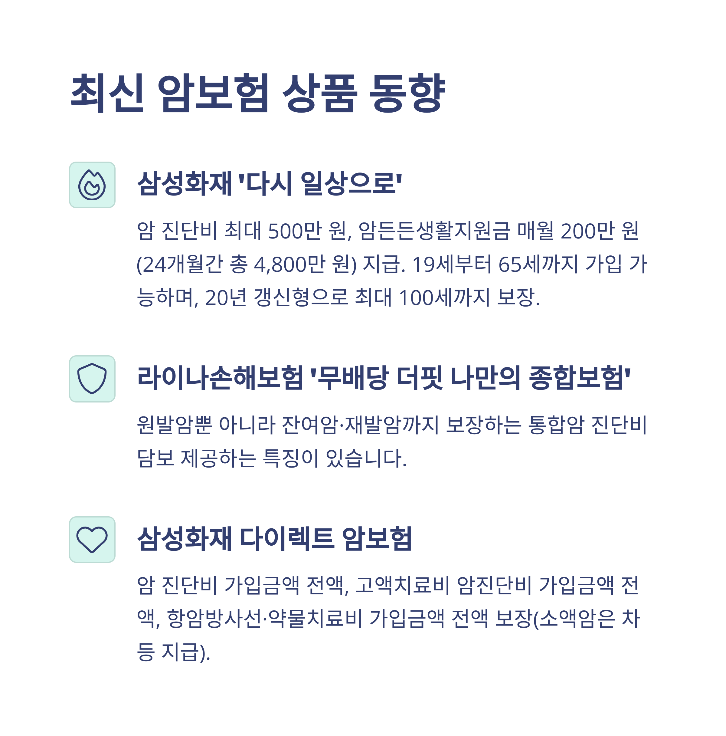 2025년 기준으로 암진단금을 제공하는 대표 보험상품들을 살펴보면 보장 범위와 방식이 매우 다양합니다. 특히 생활지원금까지 포함된 상품이나, 고액암에 대한 추가 보장이 있는 상품은 주목할 필요가 있어요.
