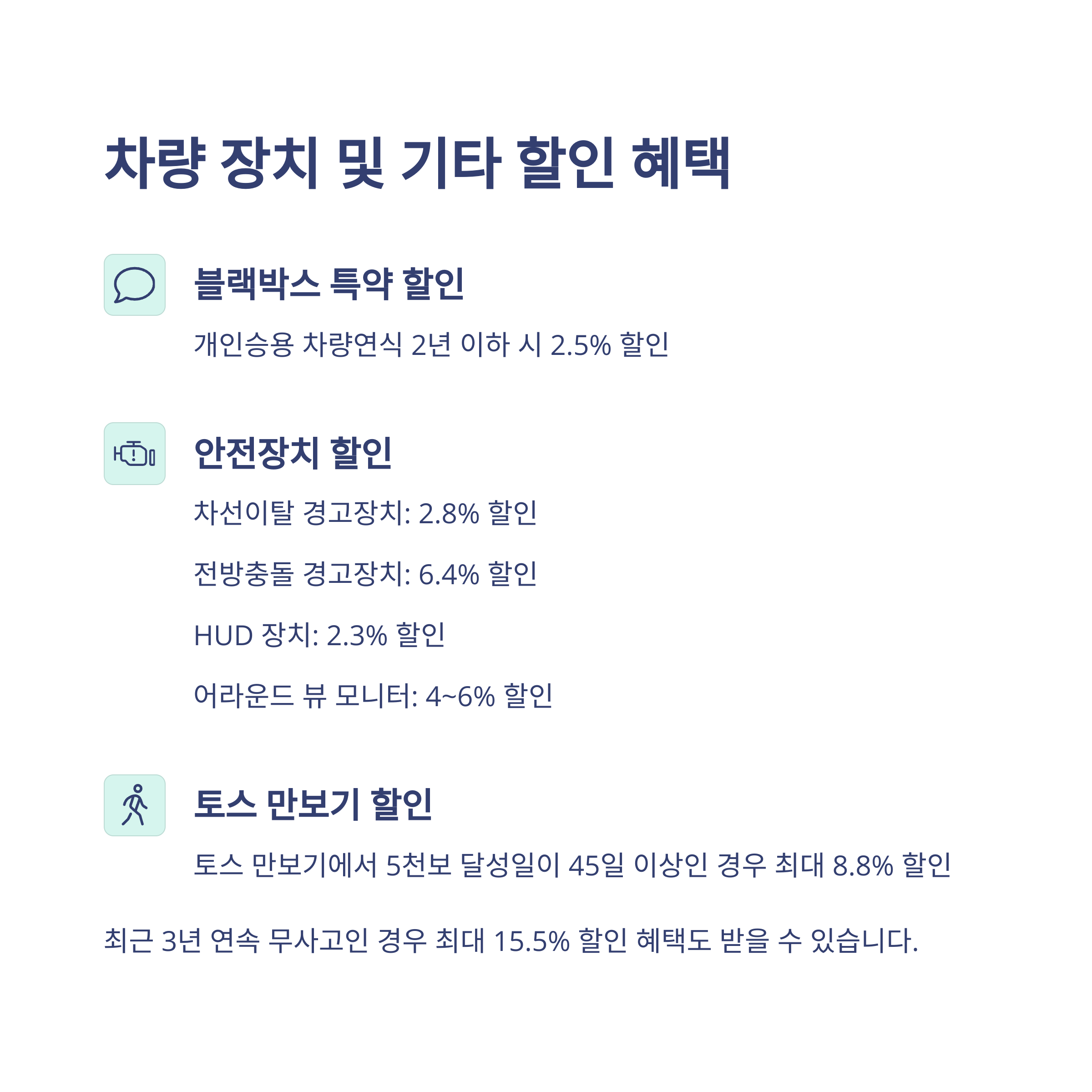 | 3년 무사고 | 최대 15.5% | 교통법규 준수 |