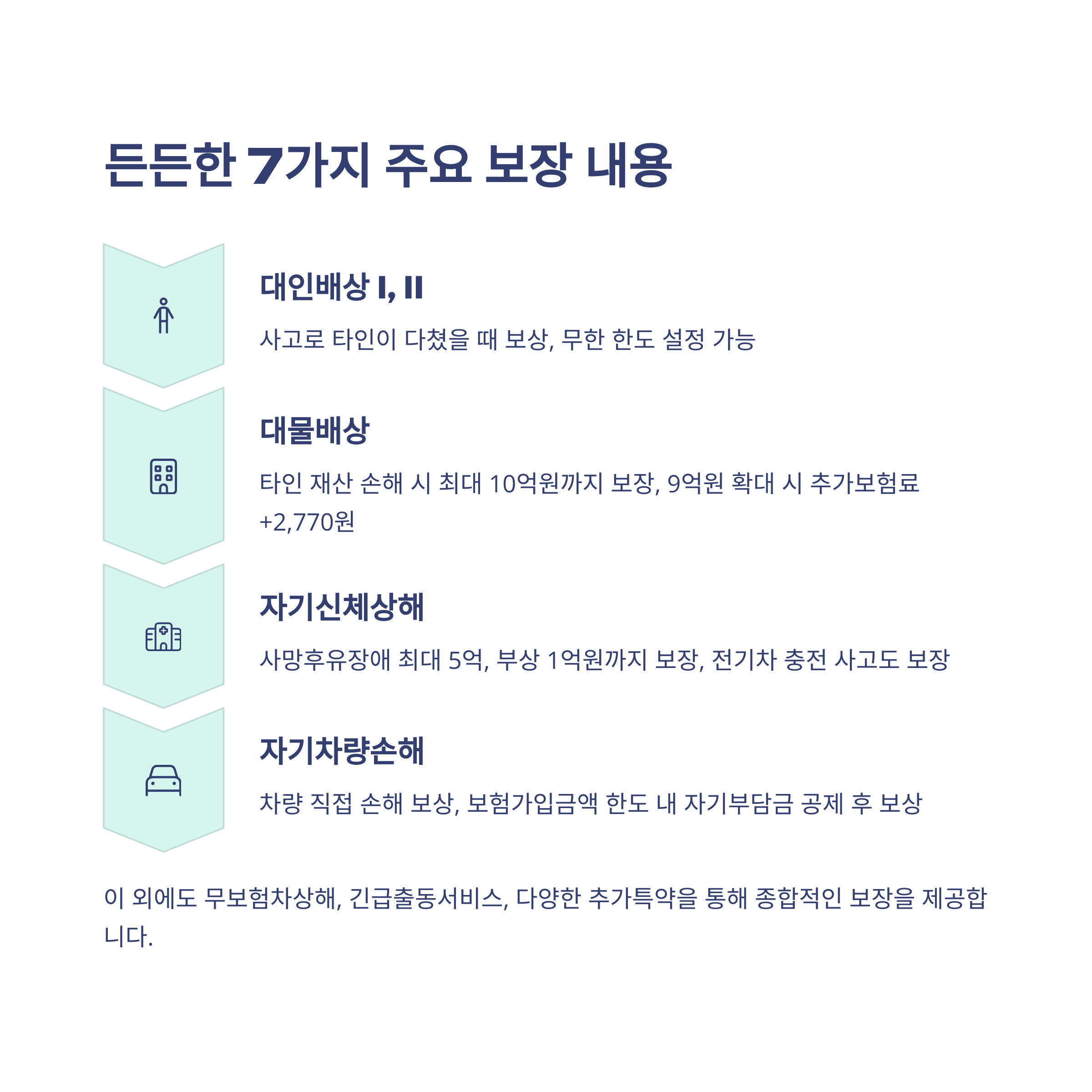 | 대인배상 I/II | 사고로 타인 부상/사망 시 무한 보장 가능 |