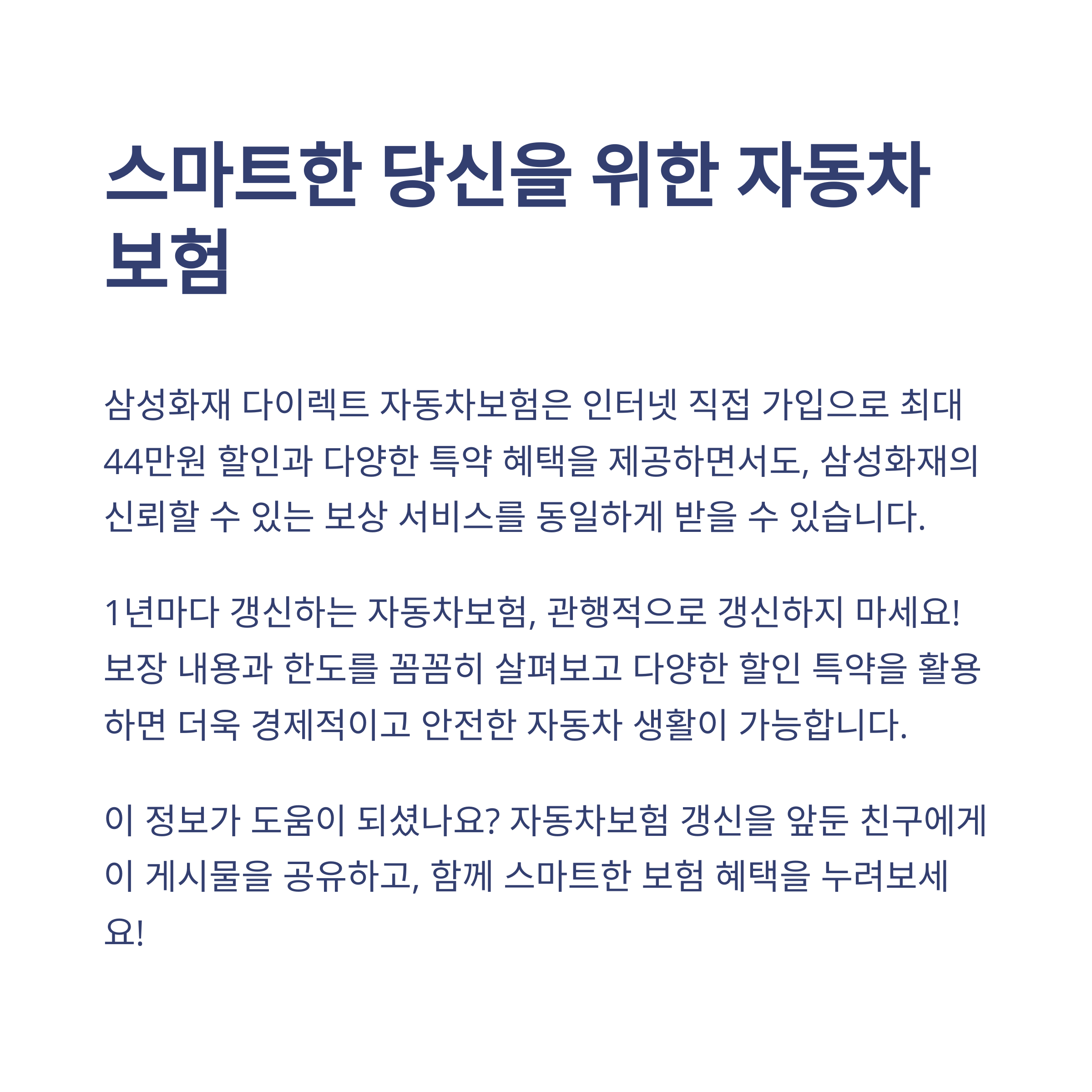 인터넷 가입만으로 보험료 수십만 원 절약? 지금 바로 삼성 다이렉트 자동차보험의 진짜 매력을 확인해 보세요!