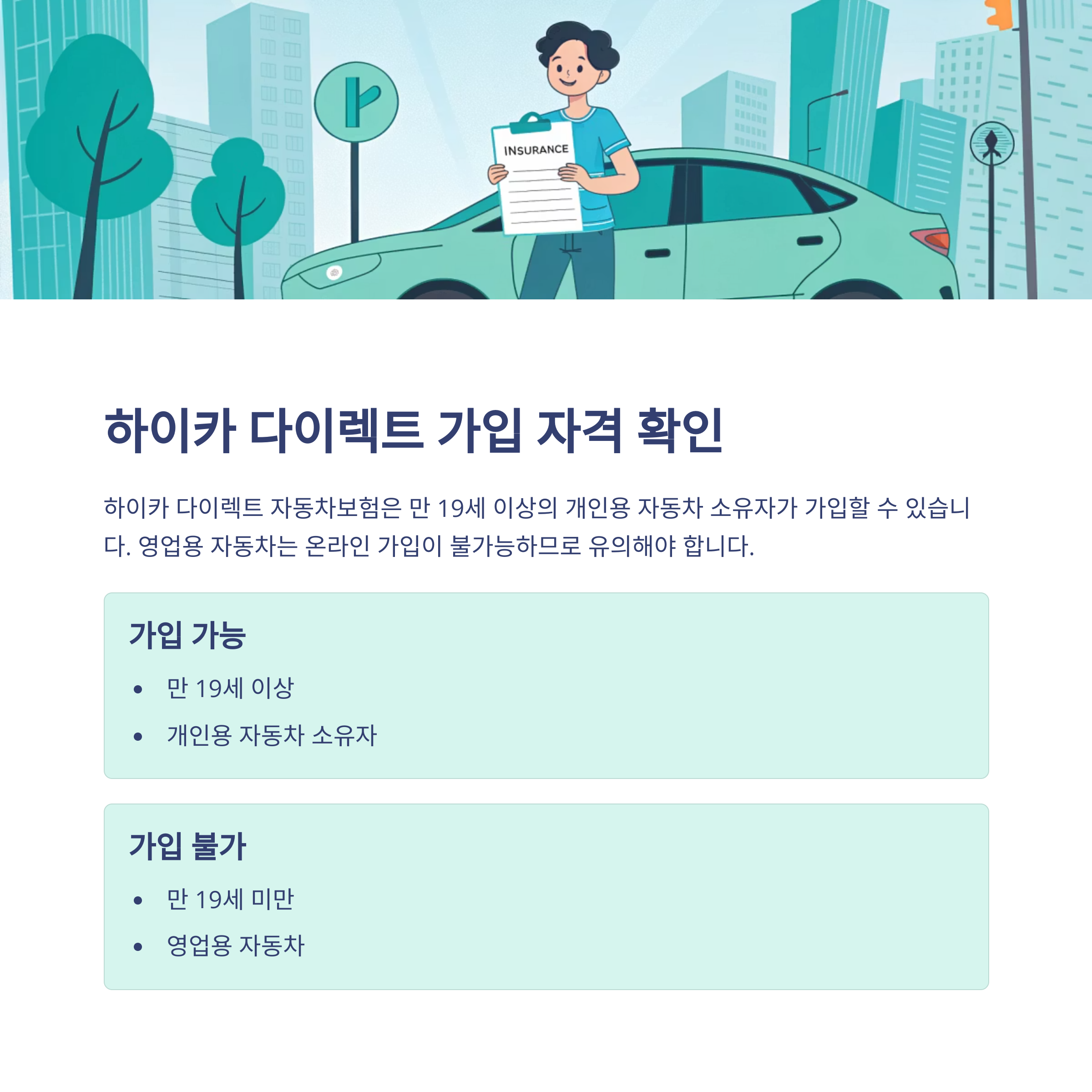 하이카 다이렉트 자동차보험은 아래 조건을 충족해야 가입할 수 있어요.