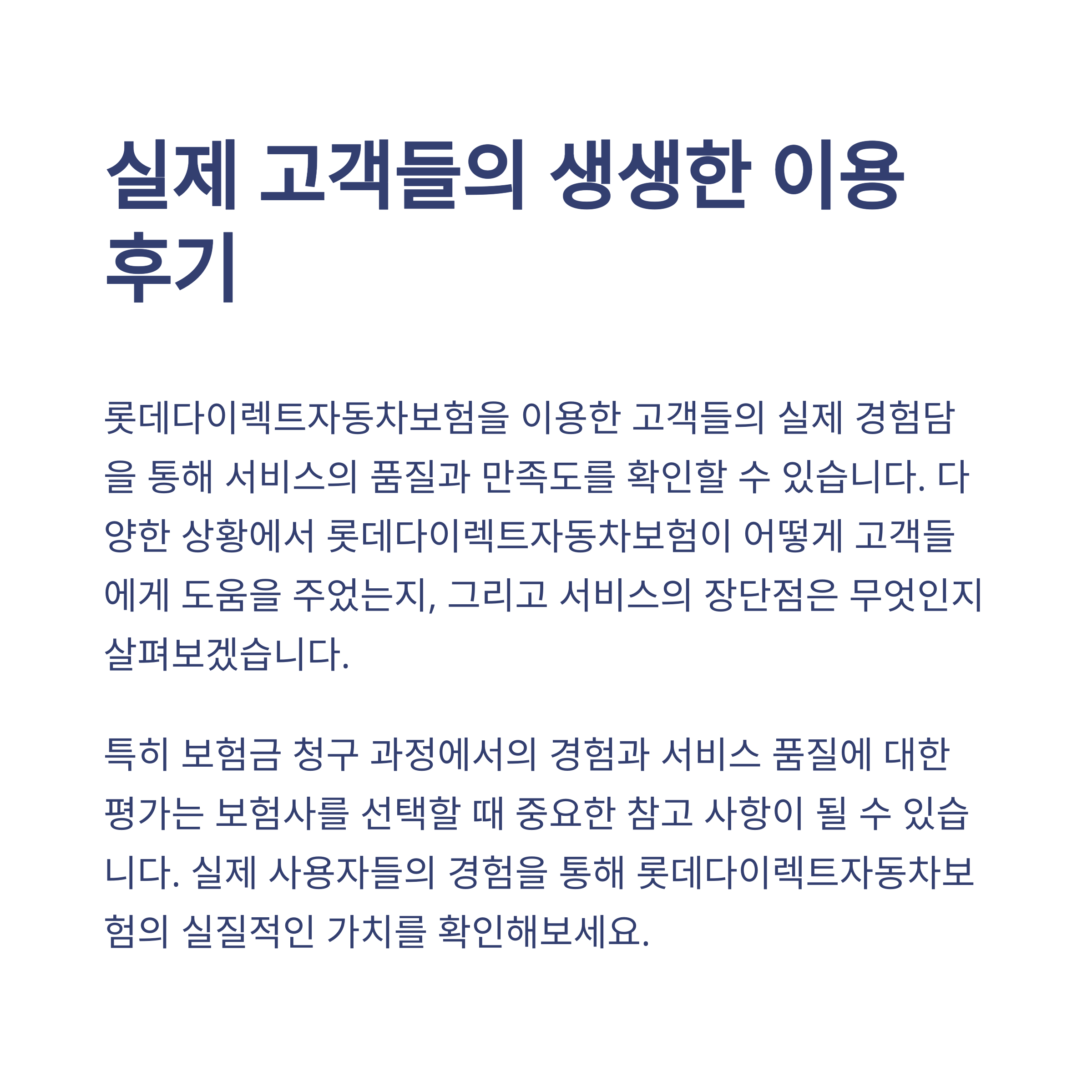실제로 롯데다이렉트자동차보험을 이용한 고객들의 후기를 보면, 간편한 청구절차와 신속한 보험금 처리에 대한 만족도가 높아요.