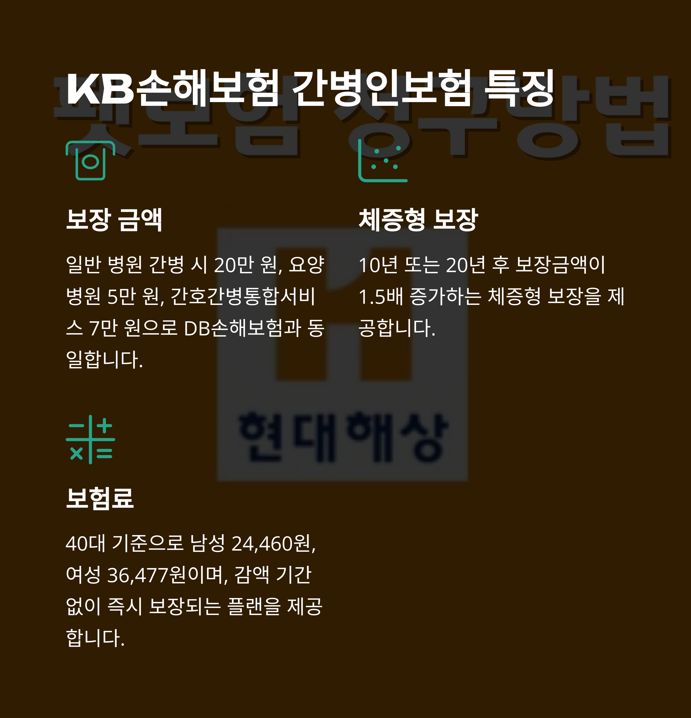 KB손해보험 20년 후 1.5배 체증, 감액기간 없음 남 24,460원 / 여 36,477원