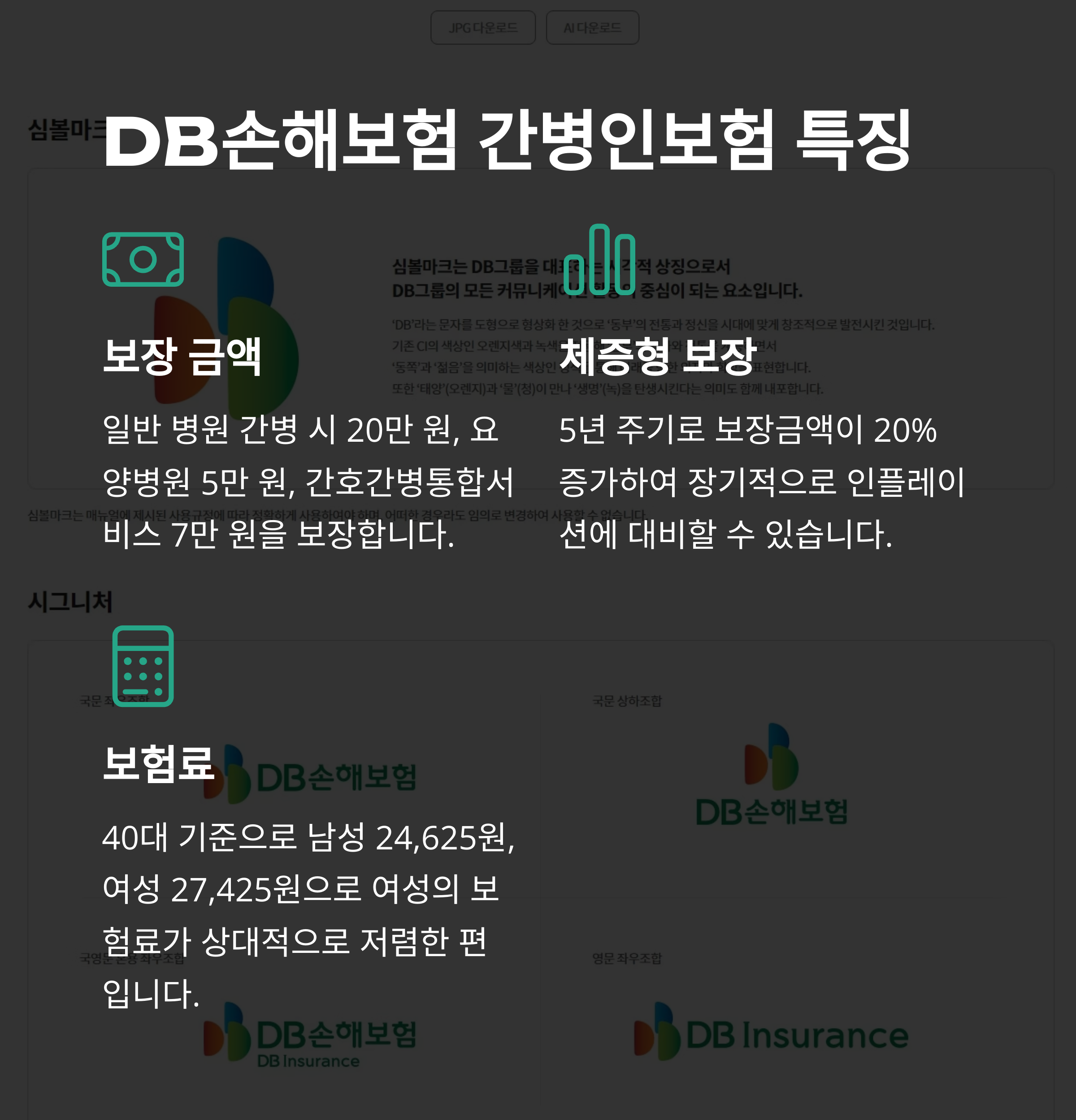 DB손해보험 5년마다 20% 체증, 간호간병 7만 원 보장 남 24,625원 / 여 27,425원