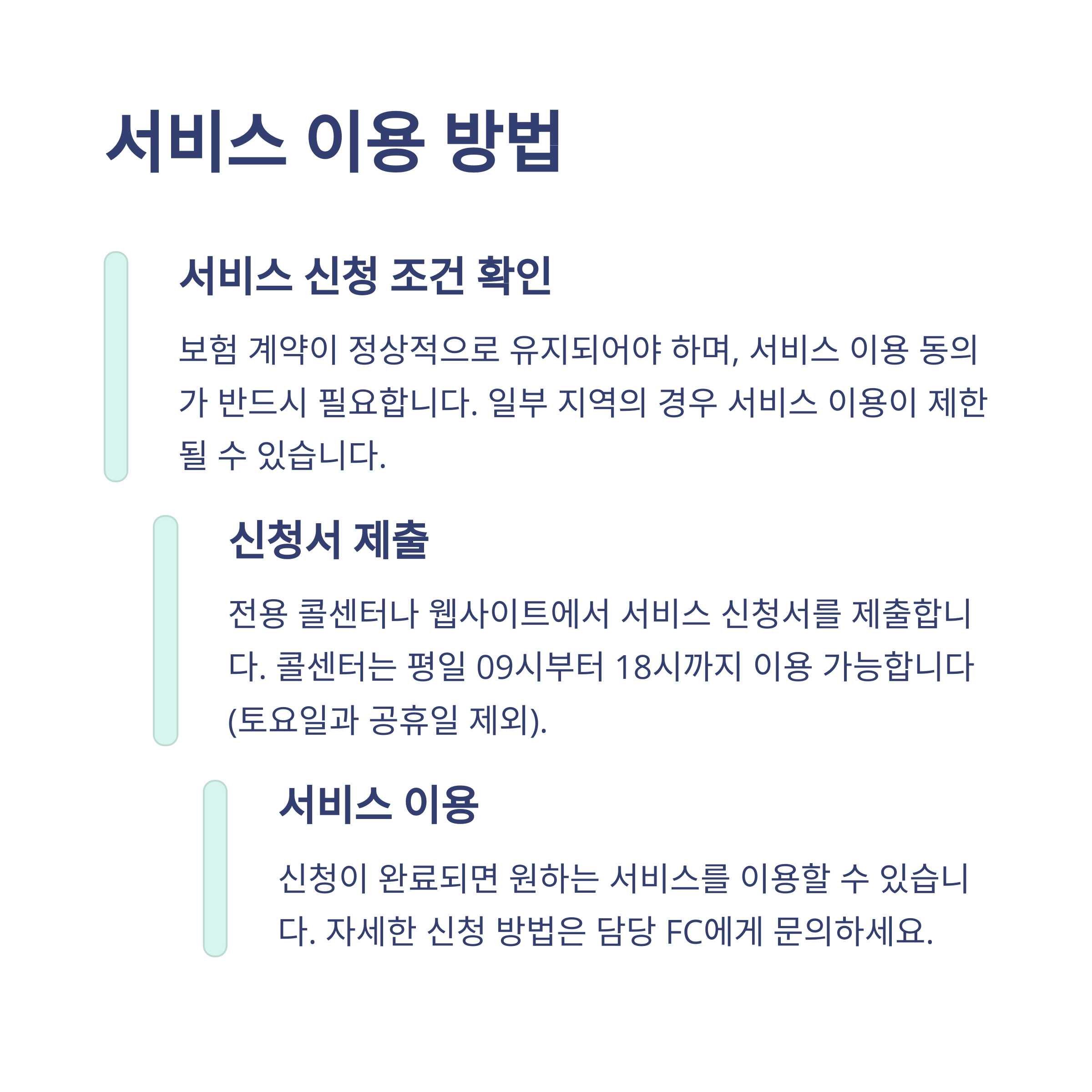 전용 콜센터 또는 웹사이트를 통해 신청할 수 있으며, 자세한 방법은 담당 FC에게 문의하면 됩니다.