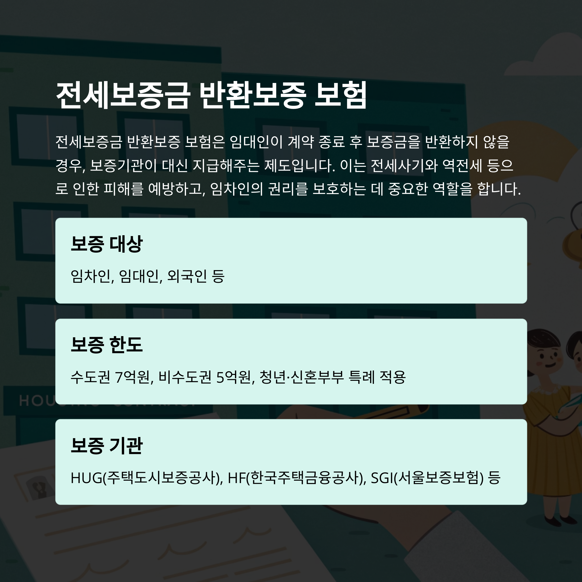 보증보험? 아직도 잘 모르겠다고요? 전세사기, 계약불이행, 손해보상까지… 이 보험 하나면 든든합니다.