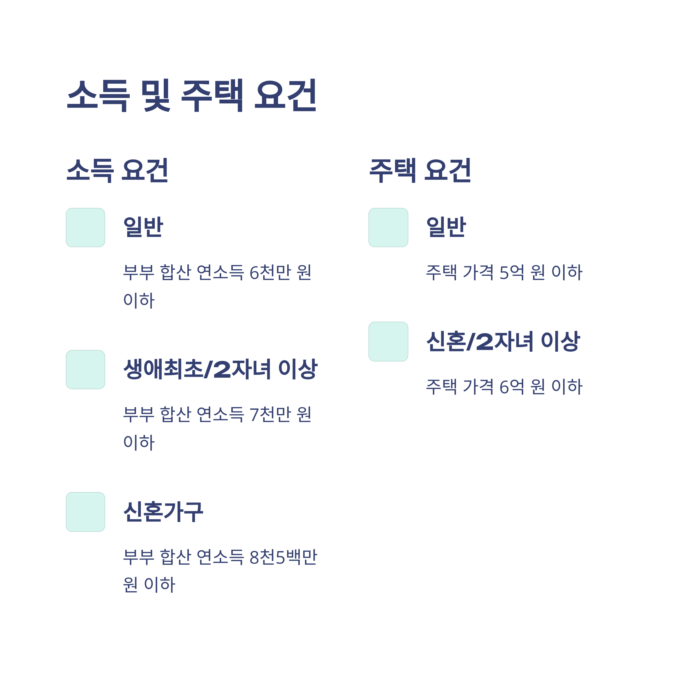 주로 무주택자, 특히 신혼부부나 청년층, 다자녀 가정이 주요 대상이고요. 금리 혜택과 LTV 우대 등 다양한 금융적 지원이 따라붙어요. 그래서 내 집 마련의 ‘시작’으로 이보다 더 좋은 기회는 없다고 봐요.