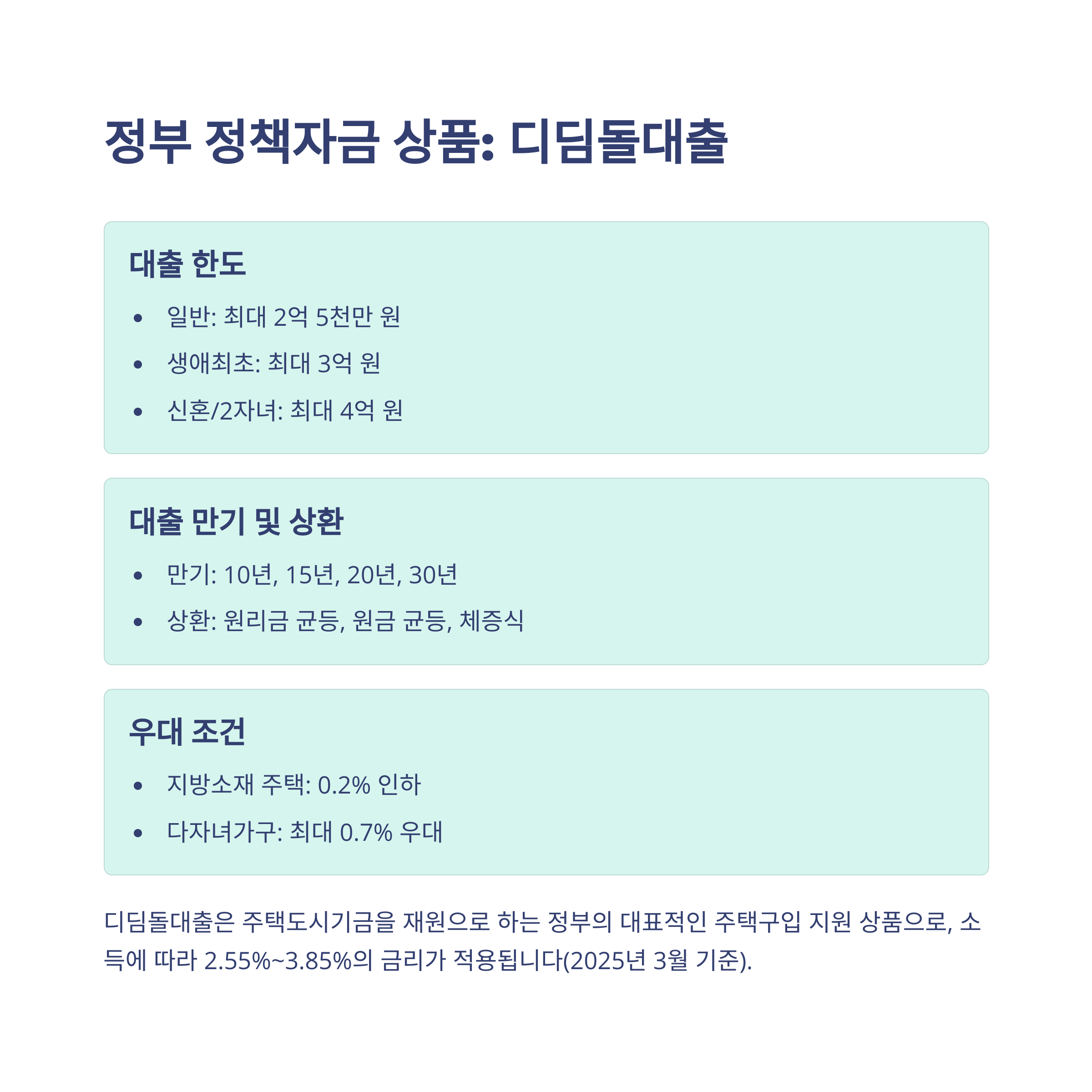 • 청년 디딤돌대출: 젊은 세대 전용, 금리 우대