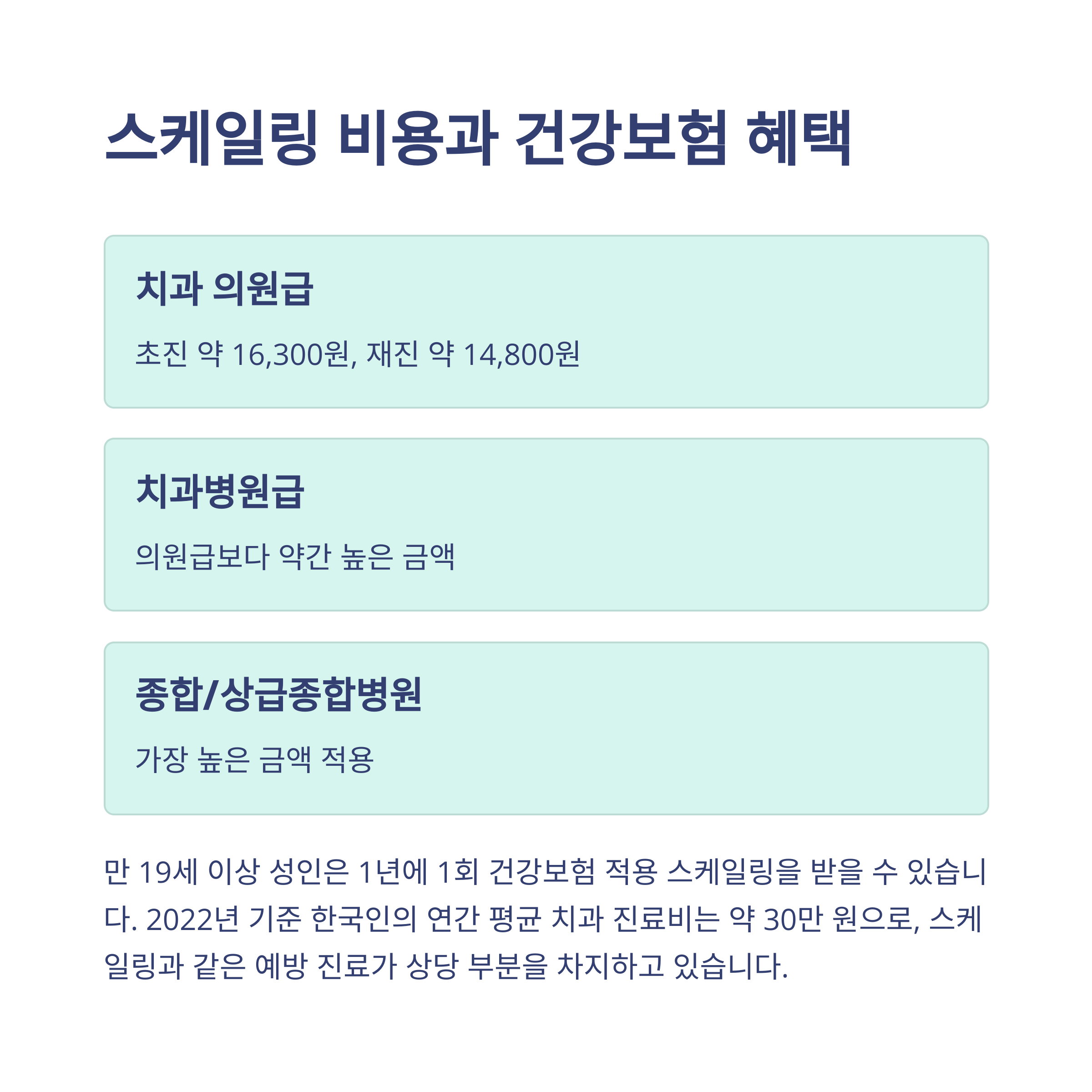 스케일링은 만 19세 이상 성인이라면 1년에 1번 건강보험 적용을 받을 수 있어요. 병원 종류에 따라 본인 부담금이 조금씩 다른데요, 제가 작년에 의원에서 받았을 때는 14,800원이었고, 친구는 병원급이라 17,000원 넘게 냈더라고요. 물론 이것도 정해진 기준 안에서만 가능한 거라, 추가 비용이 생기면 상황이 달라져요.