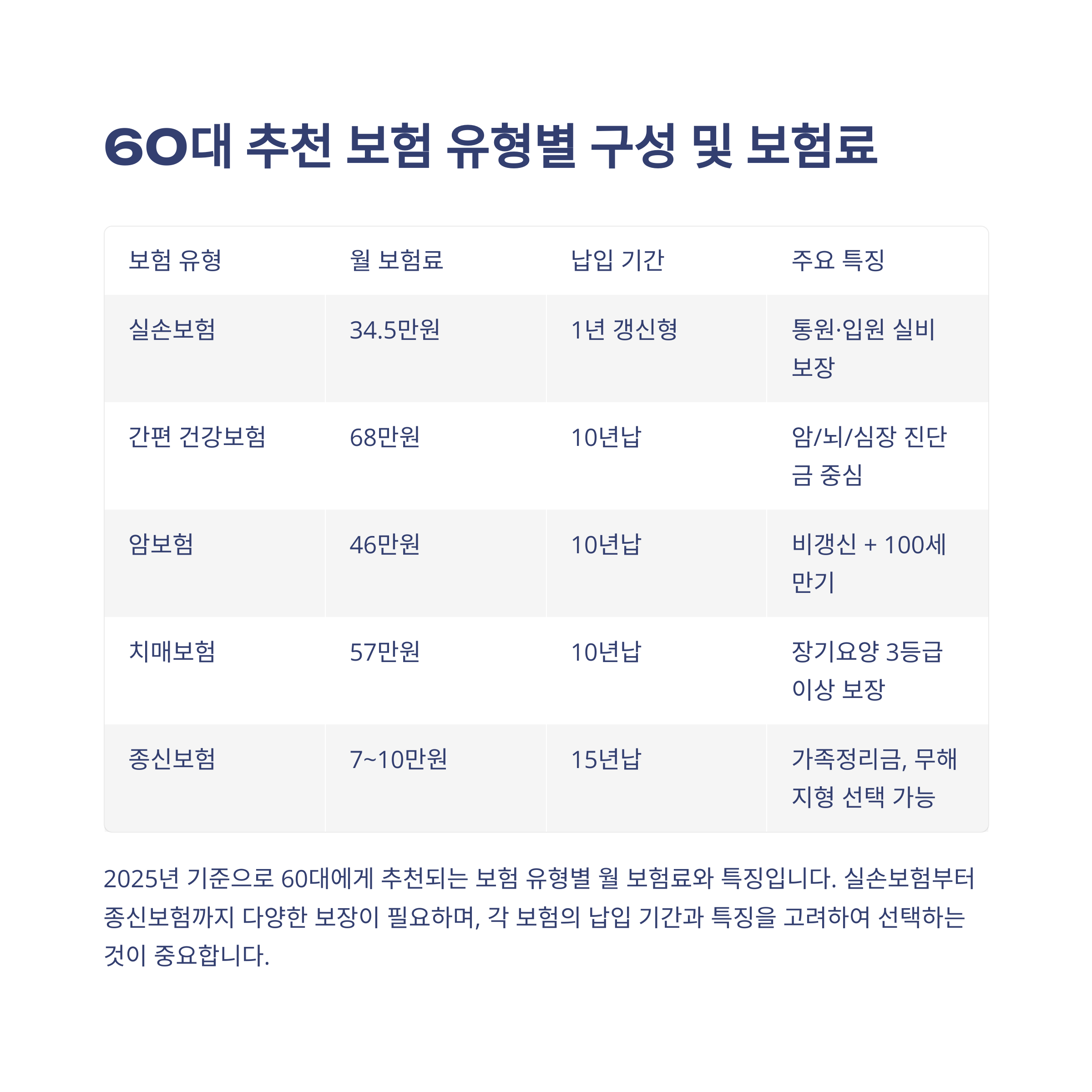보험료, 60대 보험, 실손의료보험, 치매보험, 암보험, 종신보험, 유병력자 보험, 보험 리모델링, 노후대비, 보험 가입 전략
