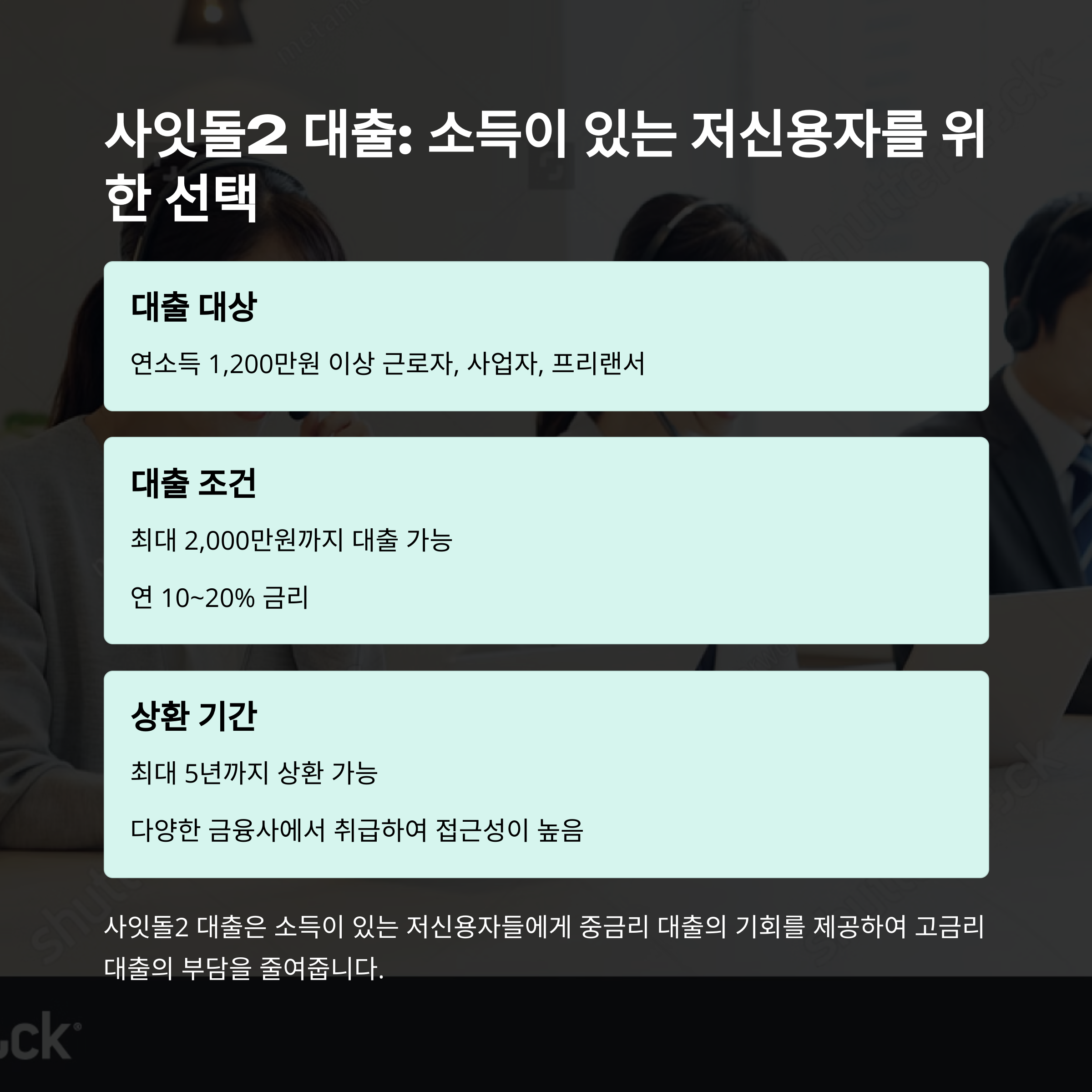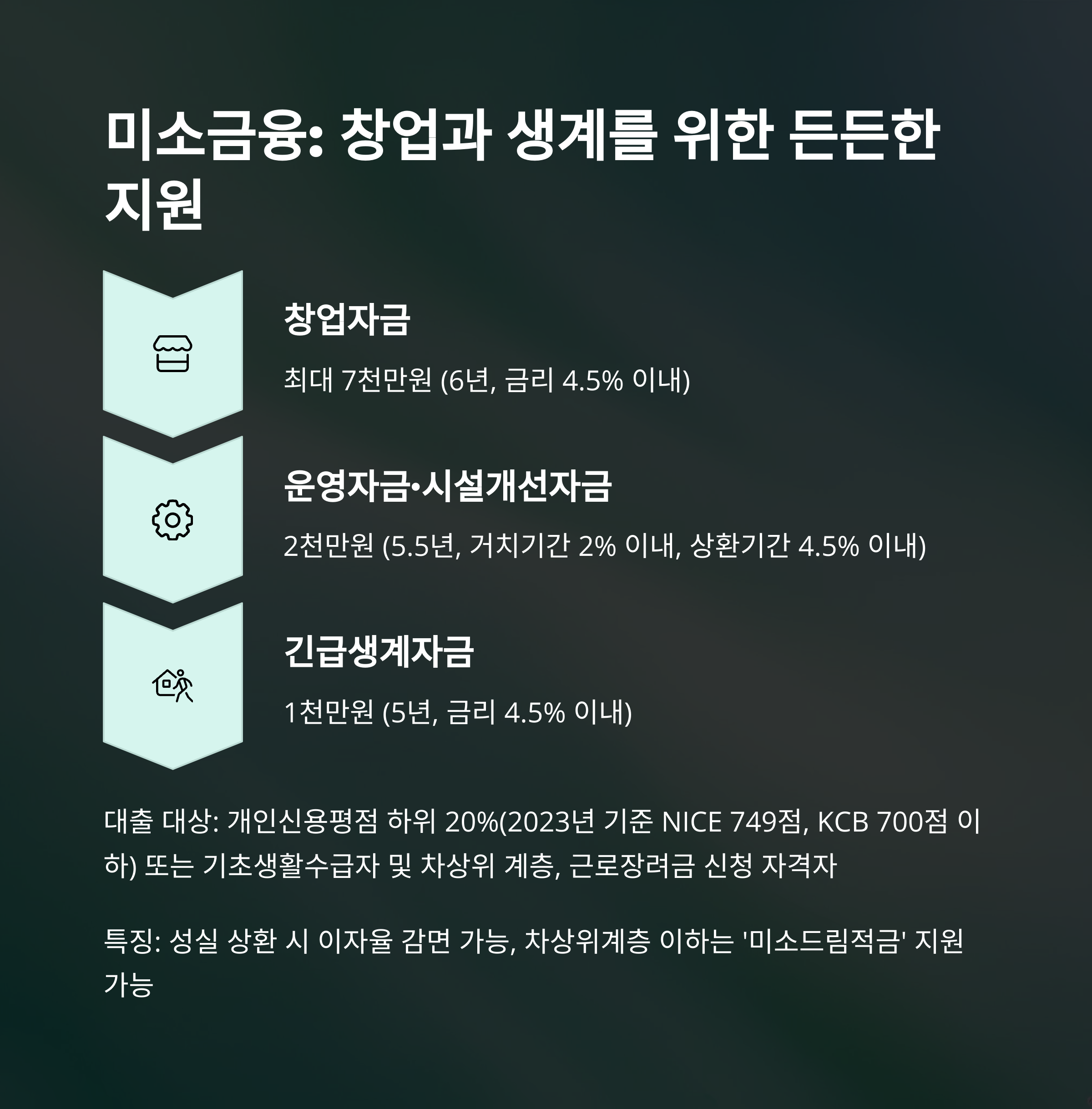 - 대출 대상: 신용점수 하위 20% 또는 연소득 4,500만원 이하