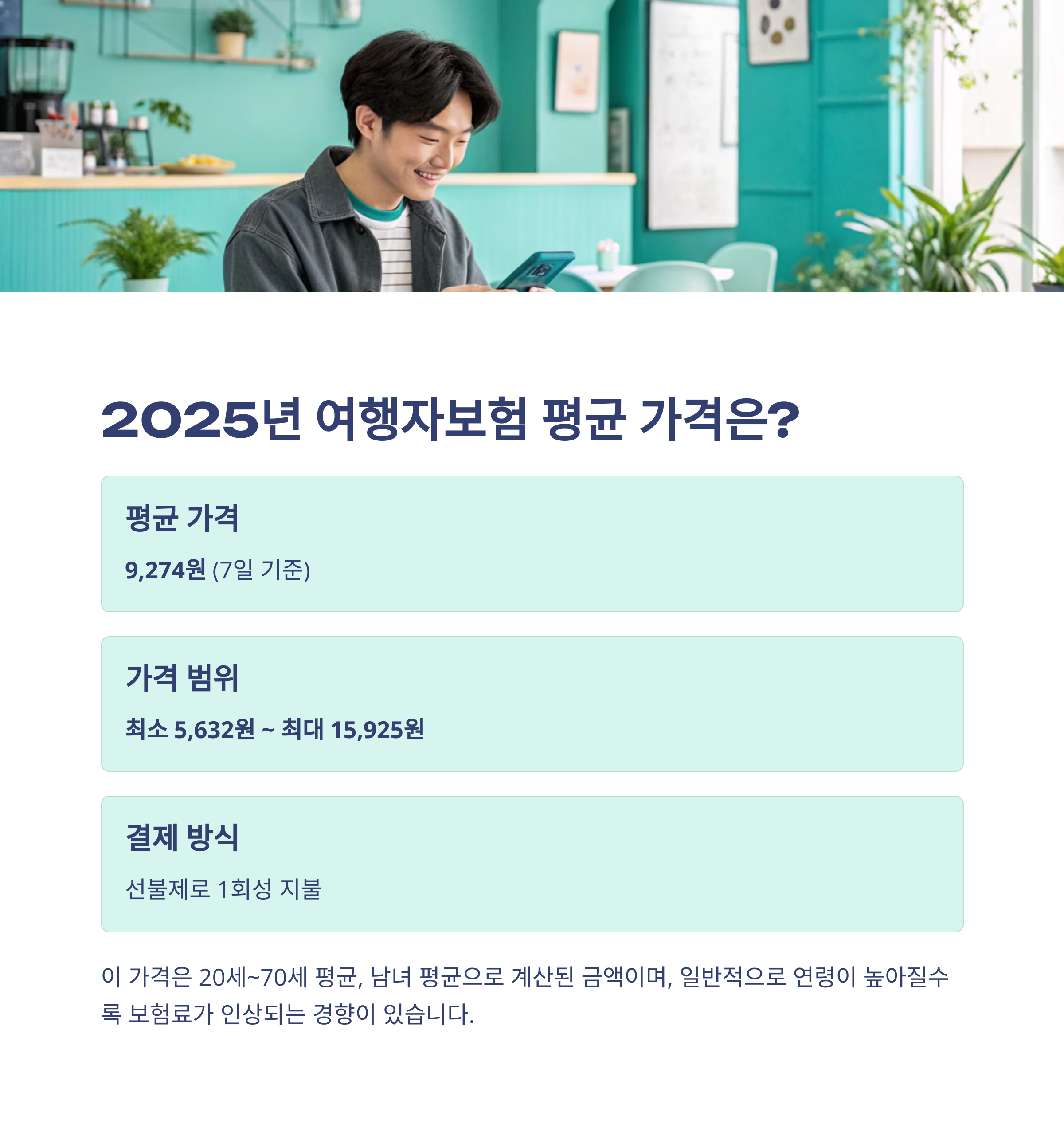 성별, 연령, 여행 지역, 여행 기간, 보장 범위를 평균적으로 조정해 산출한 값입니다. 보통 20세~70세 기준으로 계산돼요.