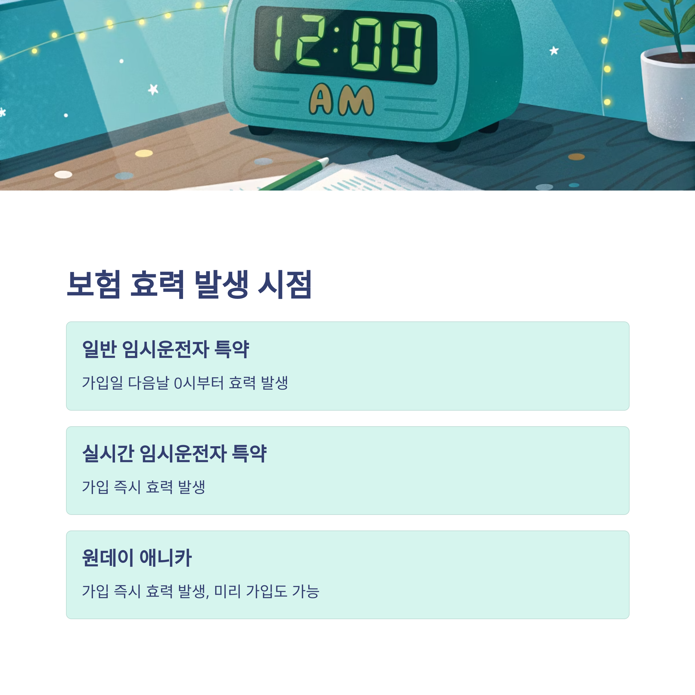 가입 즉시 효력이 발생합니다. 갑작스럽게 운전자 변경이 필요할 때 매우 유용한 기능입니다.