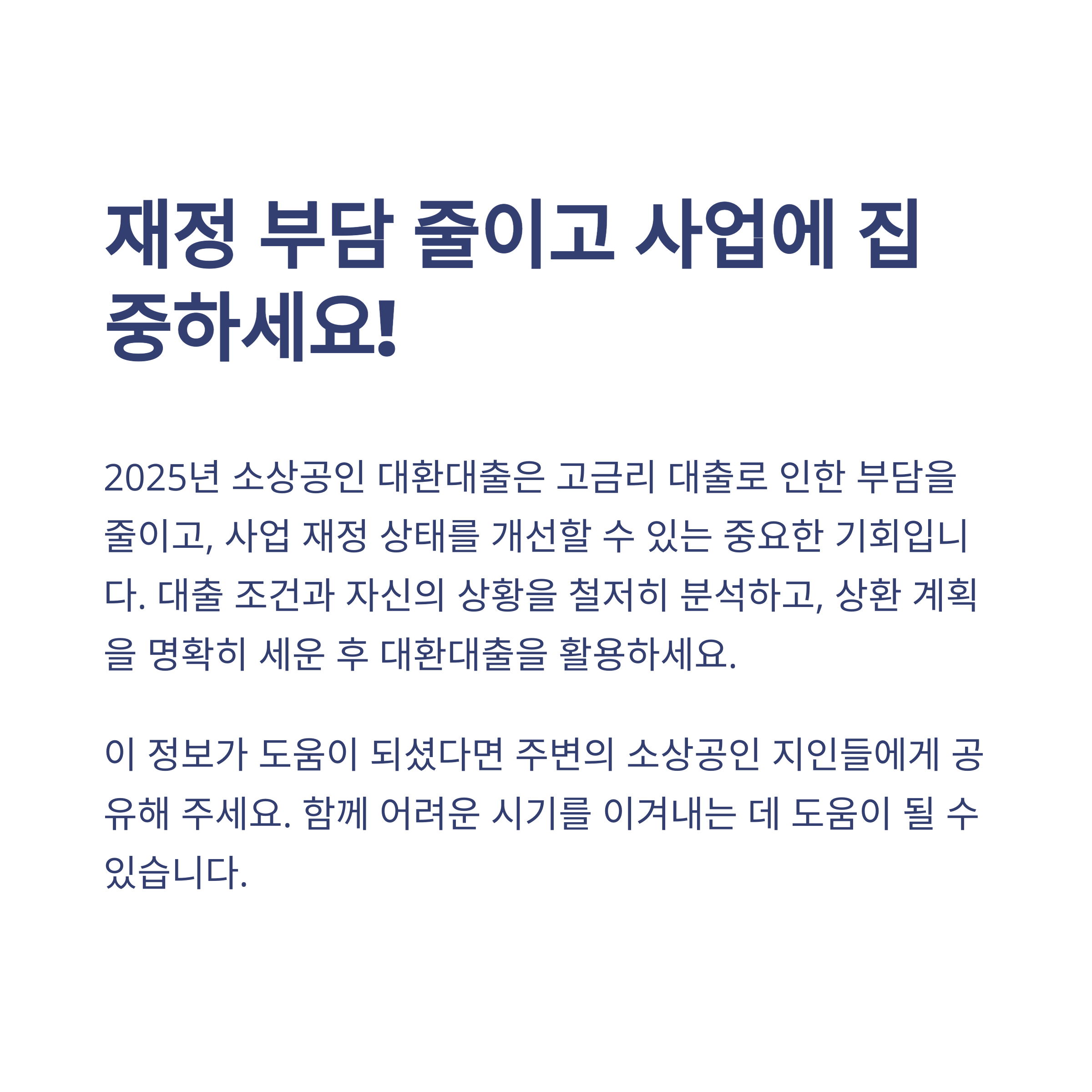 Tags: 소상공인대출, 대환대출, 저금리전환, 자영업자금융, 정부지원대출, 중소기업정책, 금융정책, 재정지원, 신용회복, 2025대출정보