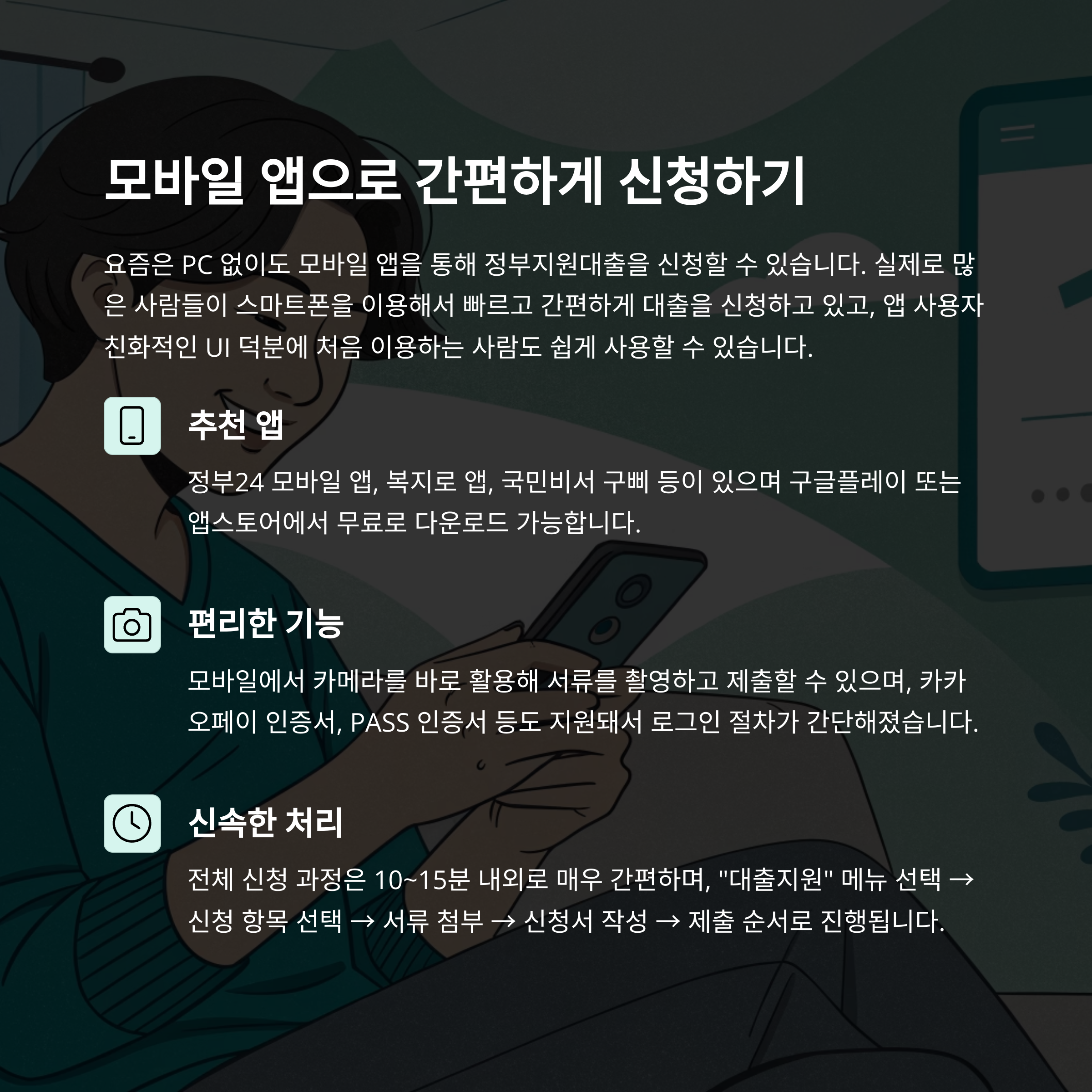 "잠깐만요, 월말에 갑자기 돈이 필요하다고요? 핸드폰만 있으면 오늘 안에 해결될 수도 있어요."안녕하세요, 여러분! 요즘같이 돈 나갈 일 많고 예기치 못한 지출이 잦은 시대에, 간단히 핸드폰