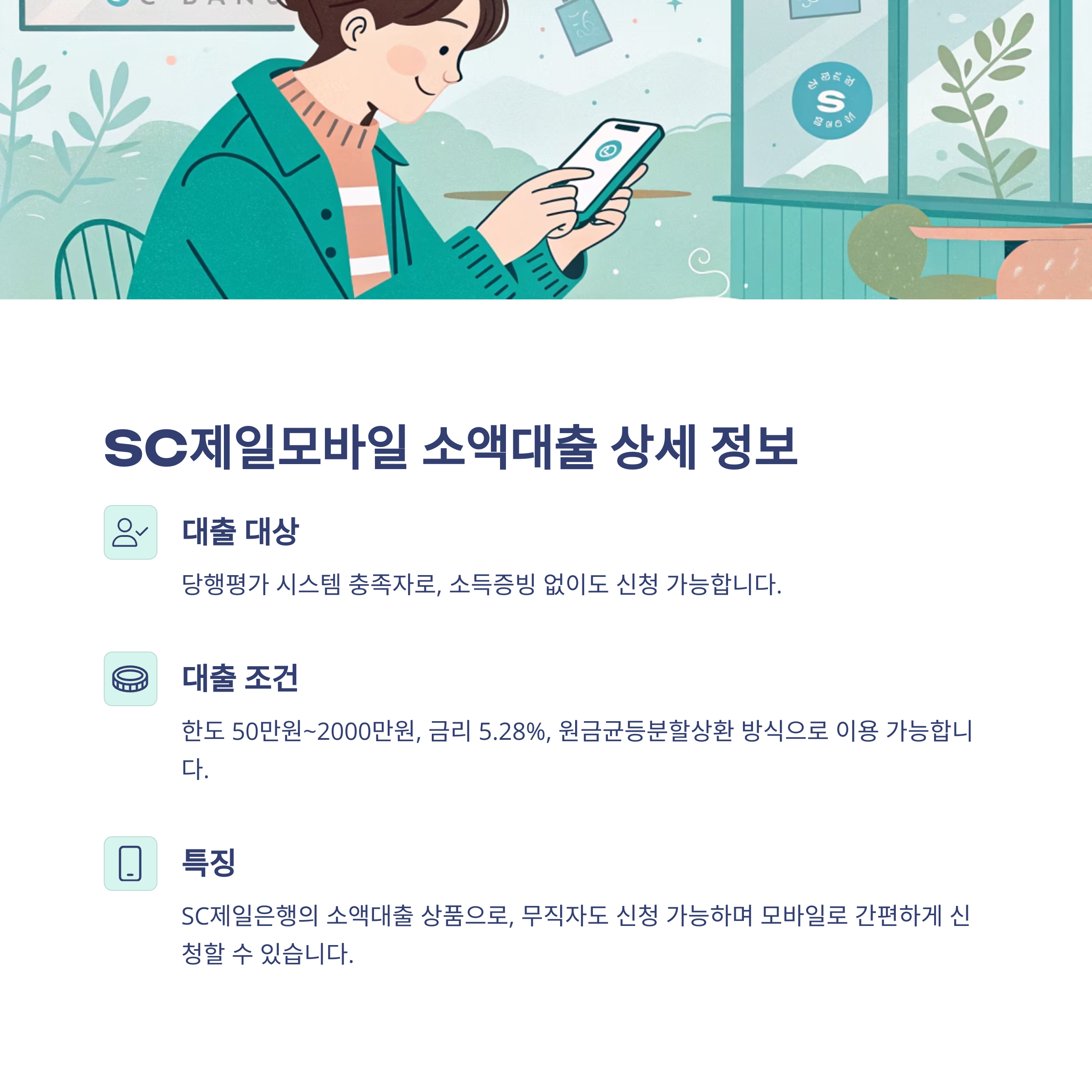 빠른 대출을 원하신다면 인터넷전문은행이나 모바일 앱을 통한 비대면 대출 상품을 알아보시는 것이 좋습니다. 케이뱅크 신용대출 플러스나 SC제일모바일 소액대출처럼 24시간 신청이 가능하고 심사가 빠르게 이루어지는 상품들이 많아요. 하지만 급하다고 해서 조건 확인 없이 덜컥 신청하기보다는, 위에 제시된 '주의사항'을 반드시 고려하여 신중하게 접근해야 합니다.