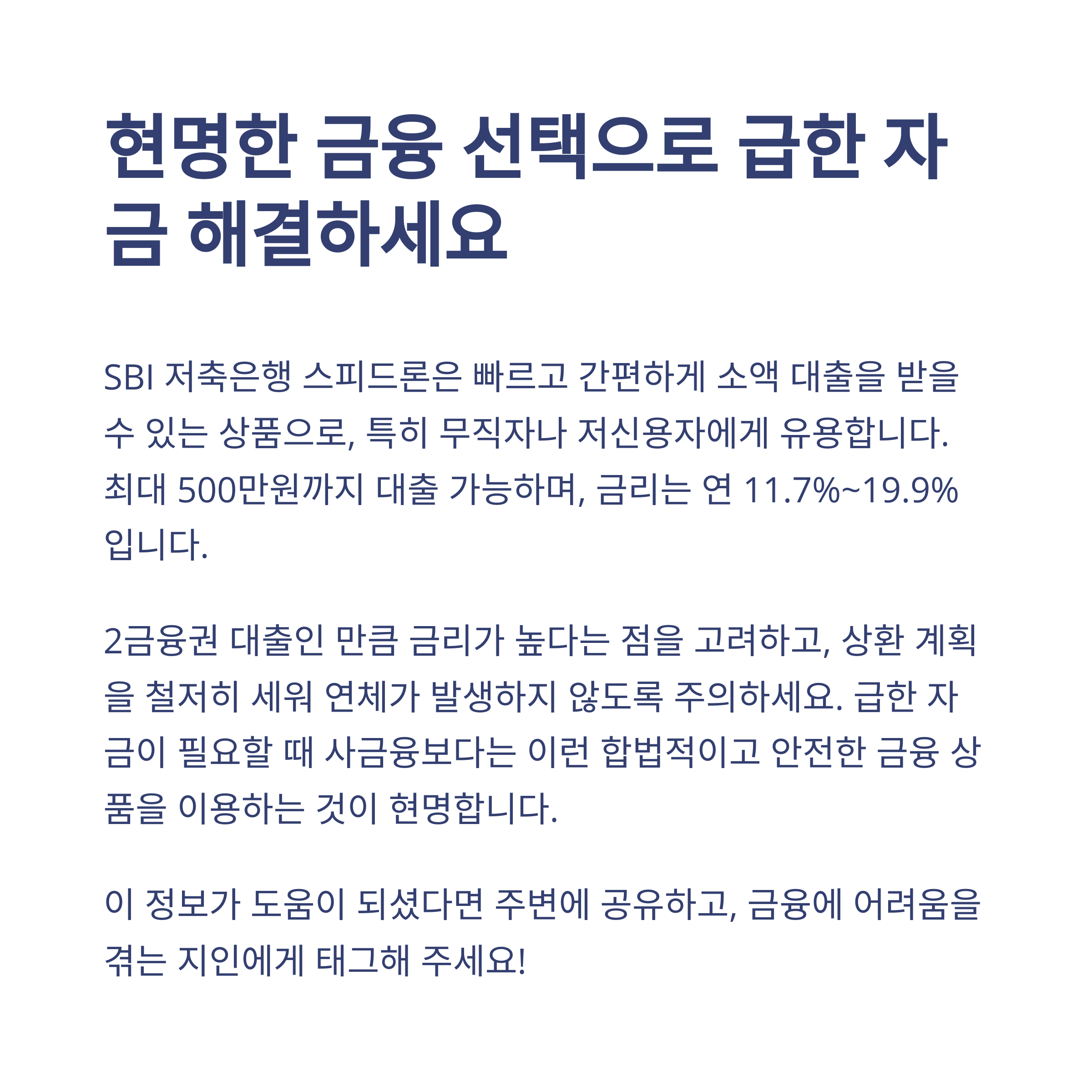 SBI저축은행, 스피드론, 소액대출, 무직자대출, 저신용자대출, 비상금대출, 빠른대출, 2025년대출, 스피드론조건, SBI스피드대출