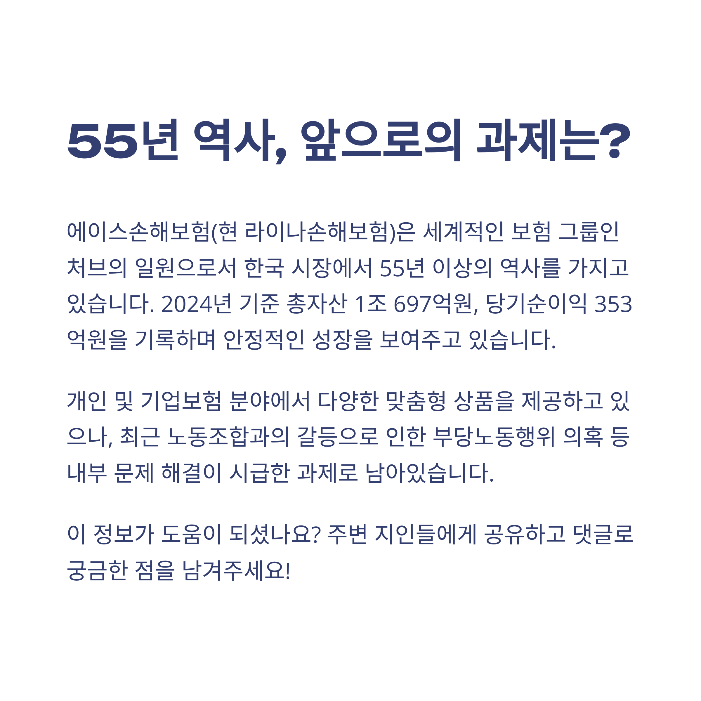 여러분, 혹시 에이스손해보험이 라이나손해보험으로 이름이 바뀐 사실, 알고 계셨나요? 세계적인 보험 그룹 처브의 일원으로서, 이 회사가 어떤 발자취를 걸어왔고, 지금 어떤 위치에 있으며, 어떤 상품으로 우리를 지켜주고 있는지 궁금하지 않으세요? 오늘 그 모든 궁금증을 풀어드릴게요!
