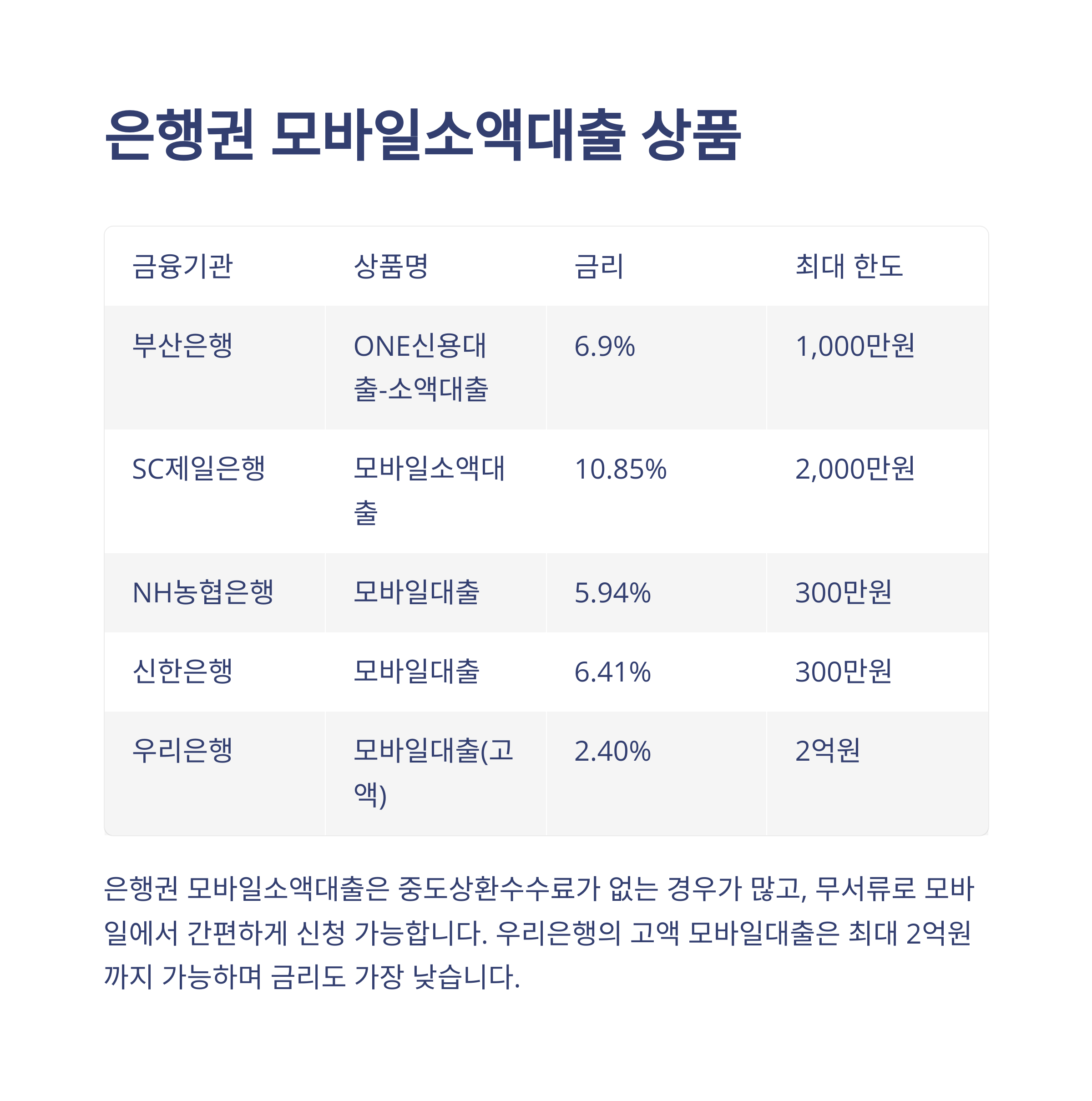 태그: 모바일소액대출, 비상금대출, 모바일대출비교, 2025대출정보, 소액대출금리, 무직자대출, 모바일금융, 대출조건, 비대면대출, 금융정보
