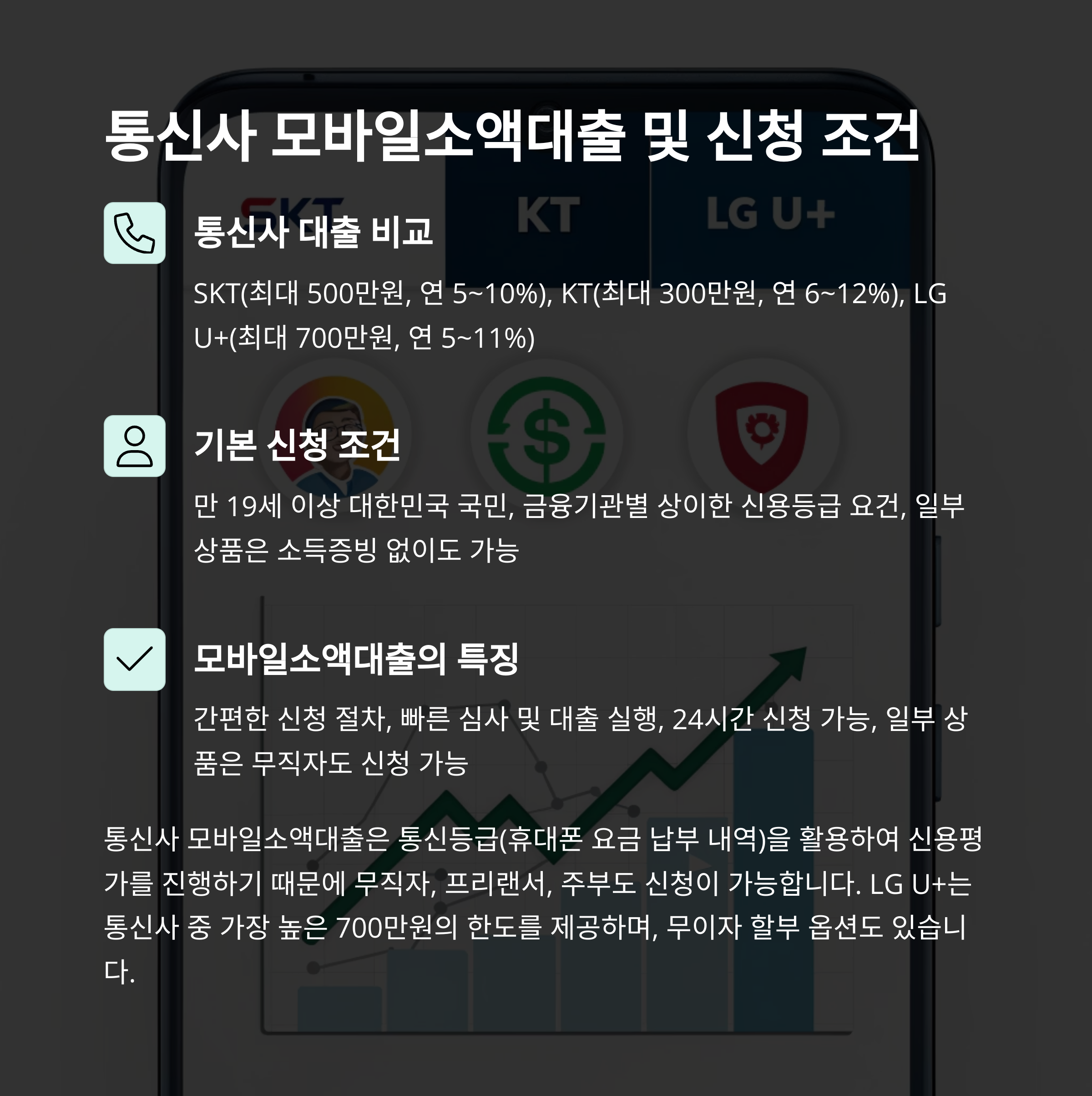 2025년 현재, 다양한 금융기관과 통신사들이 다양한 조건의 모바일소액대출 상품을 제공하고 있어요.