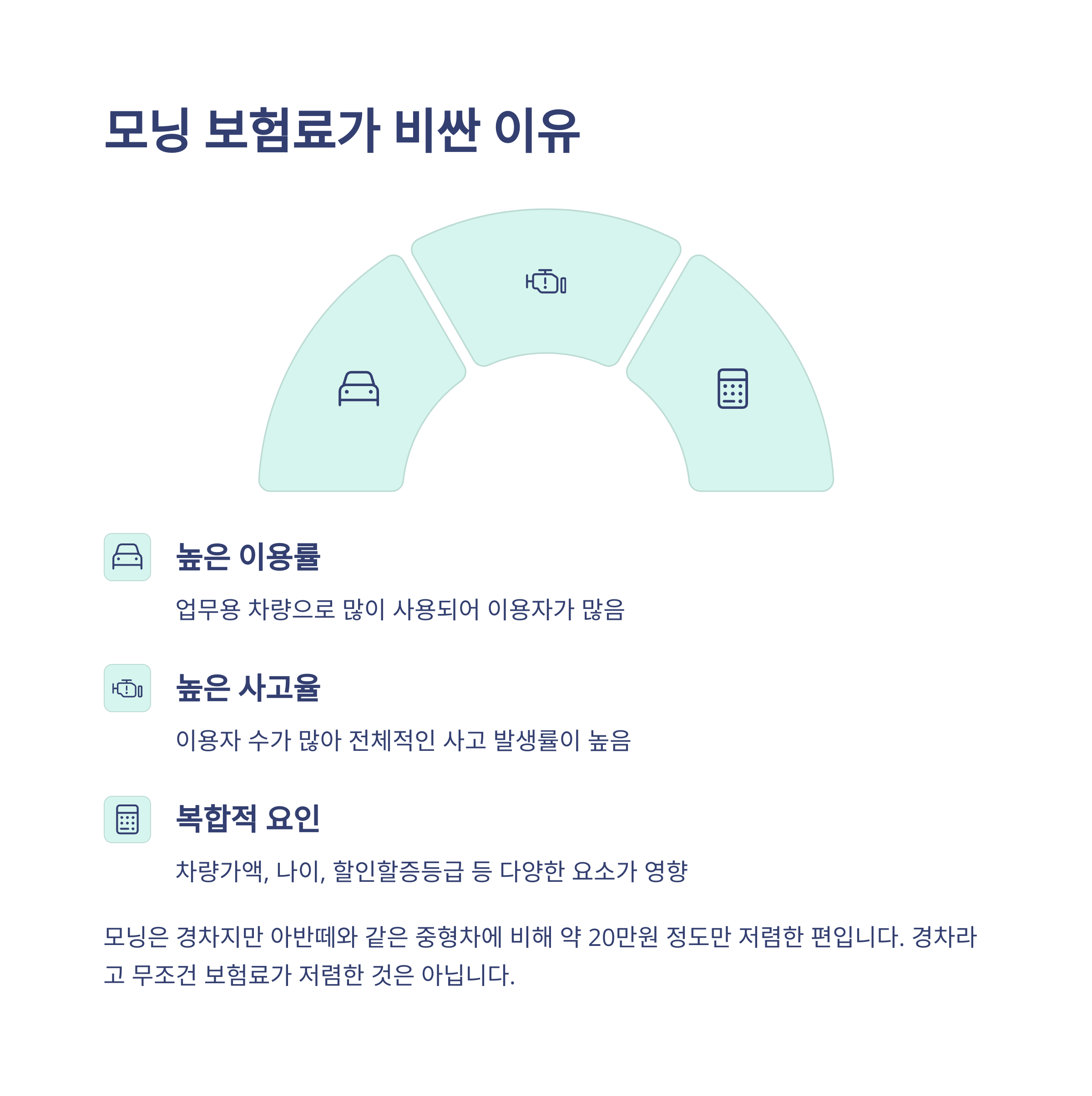 자, 이제 많은 분들이 고개를 갸웃거릴 만한 질문에 대한 답입니다. "경차인데 왜 모닝 보험료가 이렇게 비싼가요?" 저도 처음엔 정말 의아했어요. 경차는 유지비가 저렴하다는 인식이 강하잖아요? 하지만 몇 가지 복합적인 요인 때문에 모닝의 보험료가 상대적으로 높게 책정될 수 있습니다.