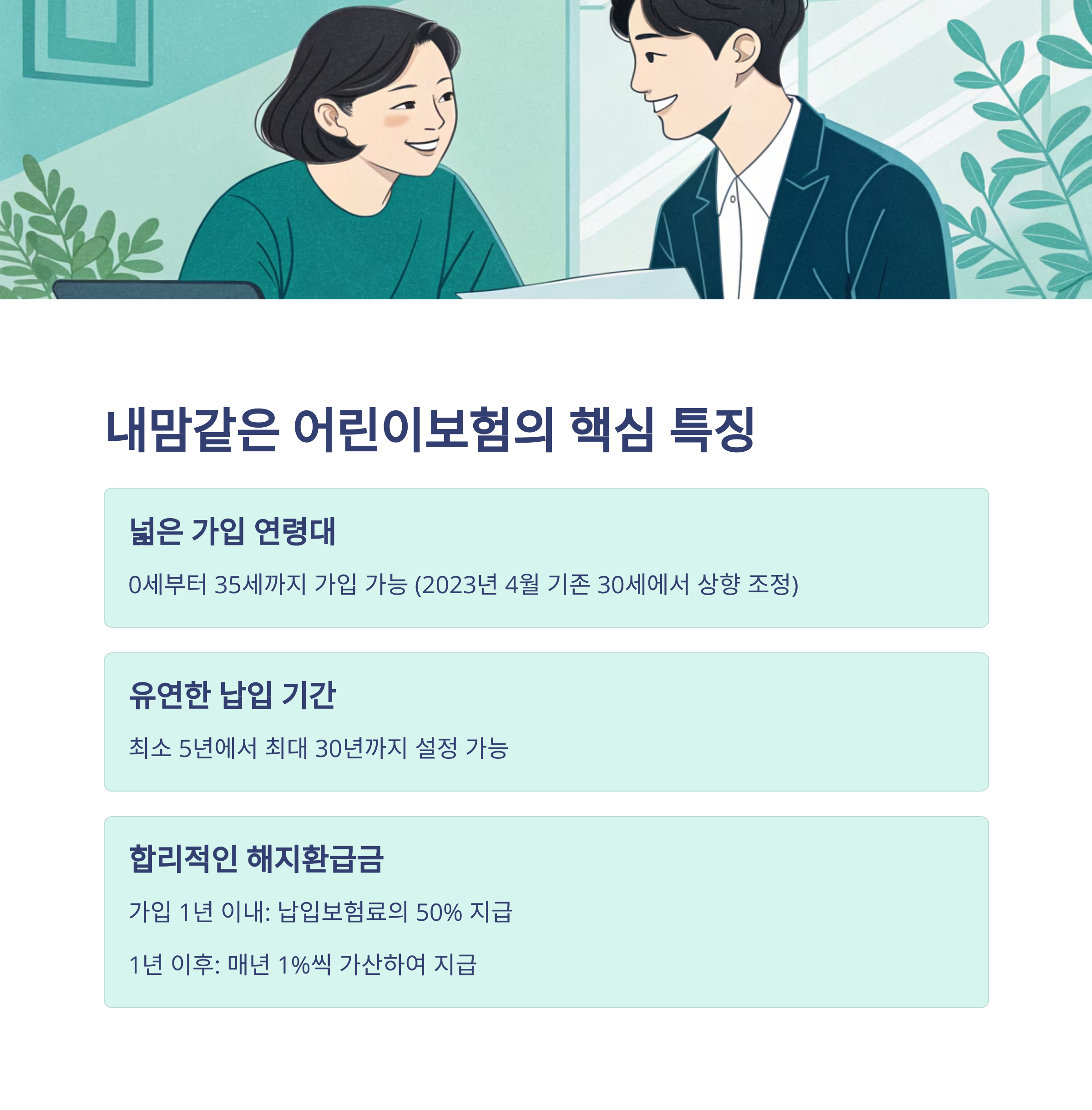 최대 만 35세까지 가입할 수 있으며, 이는 어린이보험 중 가장 폭넓은 가입 가능 연령입니다.
